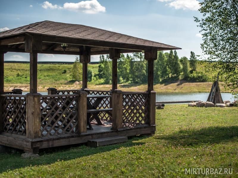 Стоимость (до 60 человек) — 7000 рублей.Беседка у озера