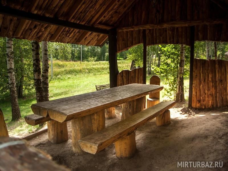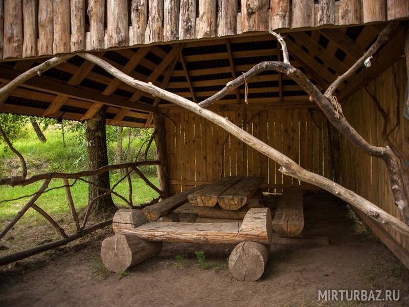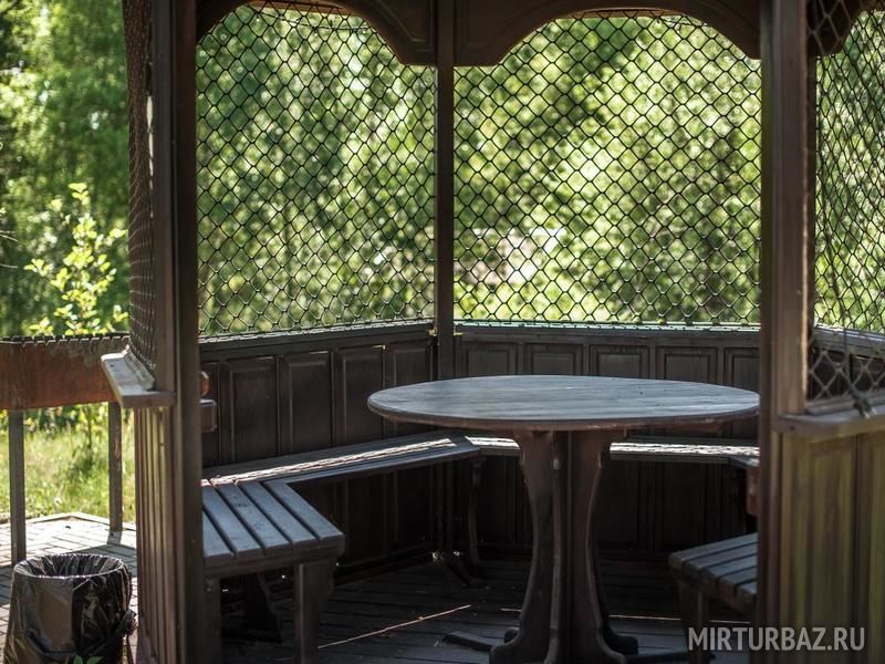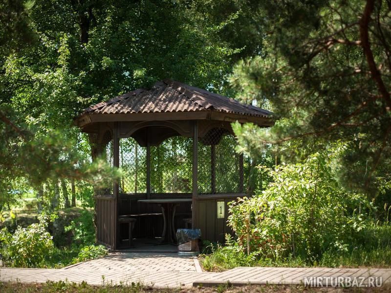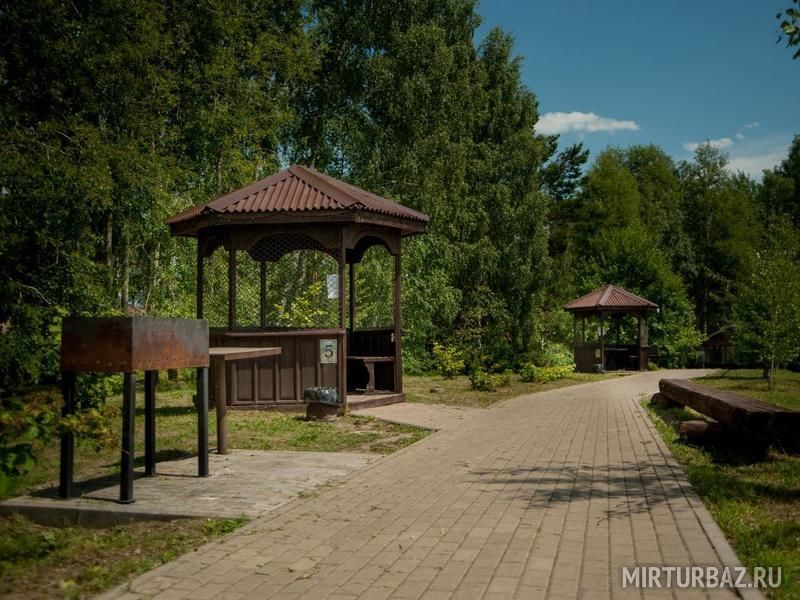 Уютные беседки с освещением, электророзетками, мангалом и умывальником. Около каждой беседки обитает сказочный персонаж - русских сказок. Вы можете побывать в гостях у Бабы-Яги, Лешего или Кощея.