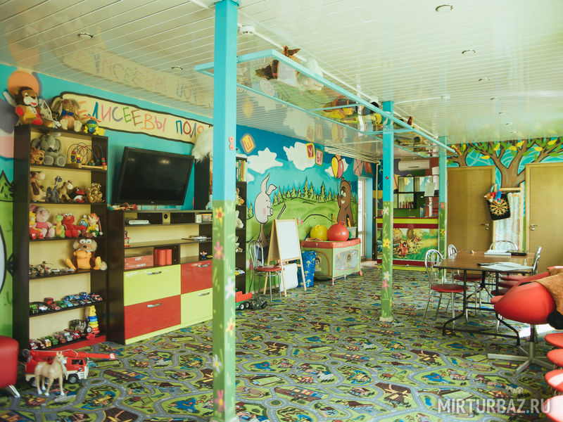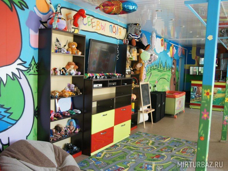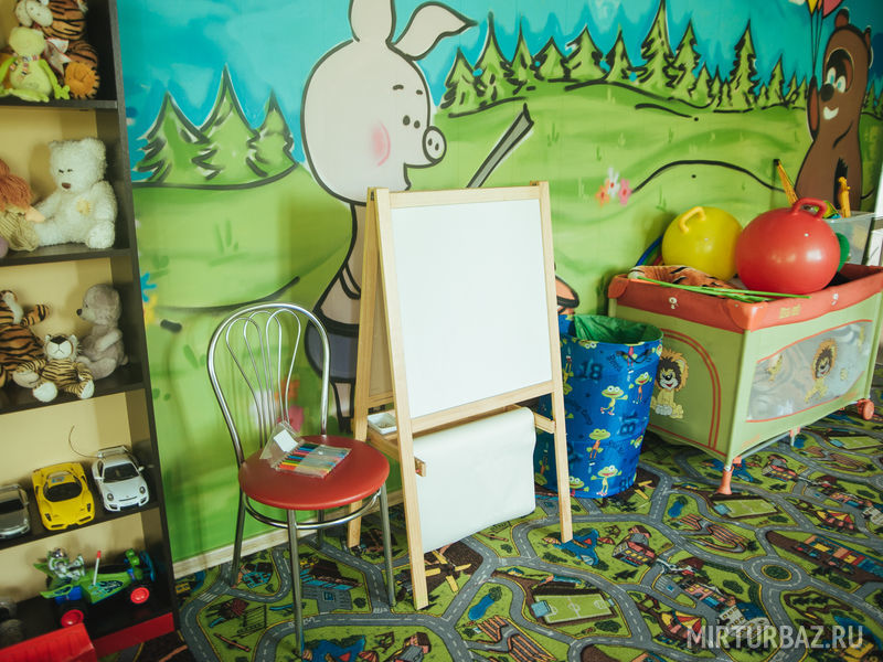 В ней находится большое количество различных игрушек, доски для рисования, развивающие игры, удобная мебель и телевизор для просмотра мультфильмов.