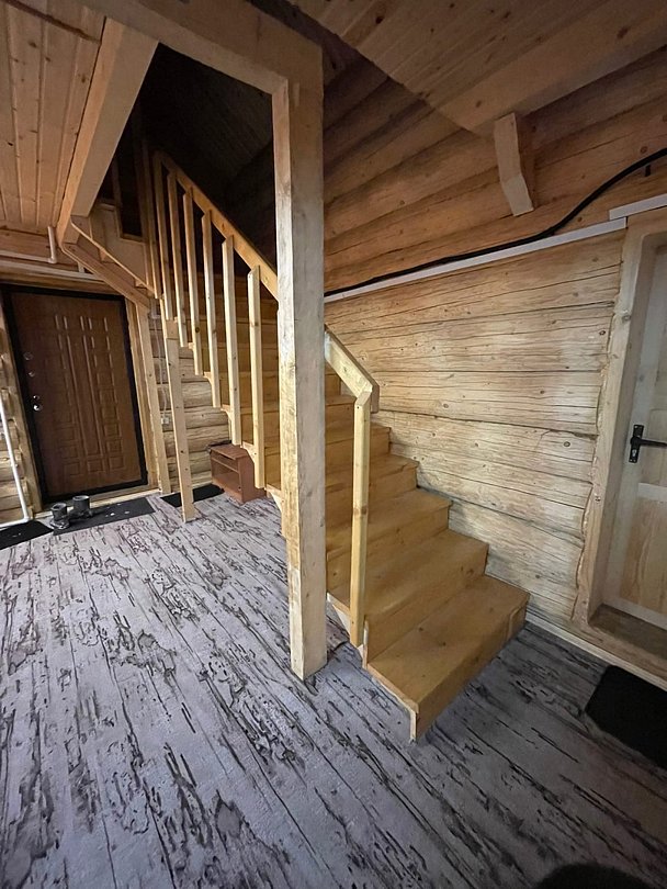 Деревянный двухэтажный дом с тремя спальными комнатами, просторной кухней-гостиной и собственной русской баней.