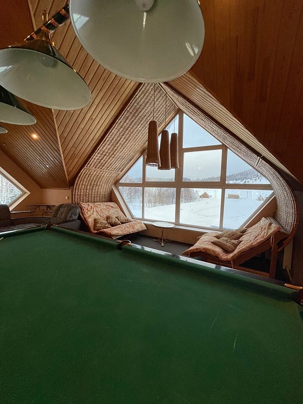 Трехэтажный дом. На 2-этаже гостиная с панорамным видом на гору и озеро, бильярдным столом, шахматным столом, просторной кухней. 5 спальных комнат с двуспальной кроватью, 2 комнаты с 2-я односпальными кроватями, зона для пинг-понга.