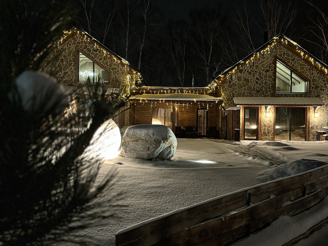 На территории базы расположено два стильных шале и три комфортабельных номера с каминами и панорамными окнами, которые открывают захватывающие виды на озеро. Для полного расслабления к вашим услугам современная баня шале, баня с панорамным видом на озеро и уличный чан для купания под открытым небом — все это идеальные места, чтобы восстановить силы и забыть о повседневных заботах.