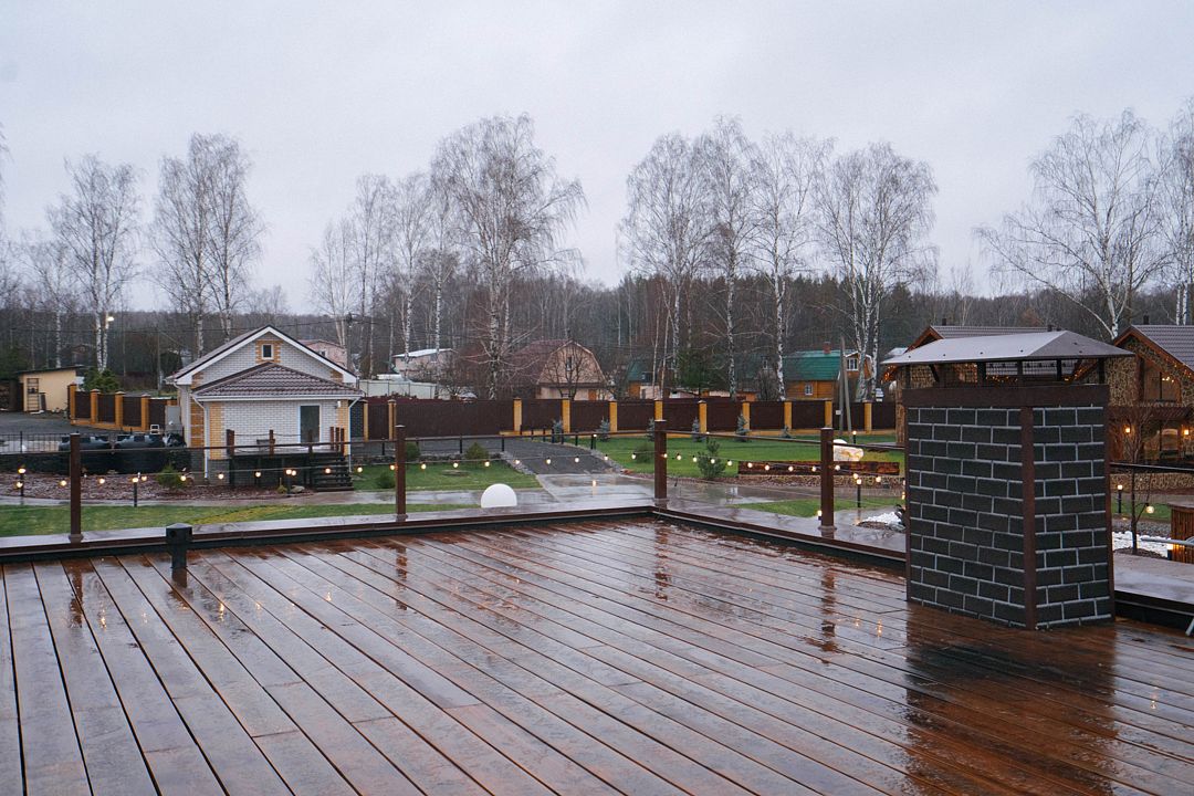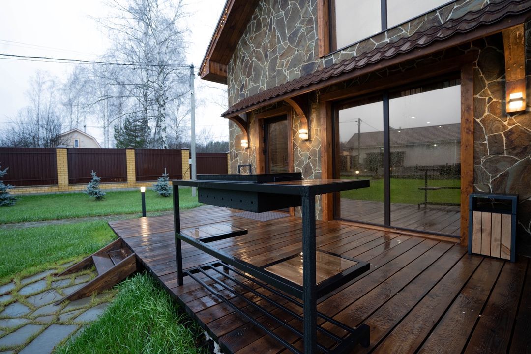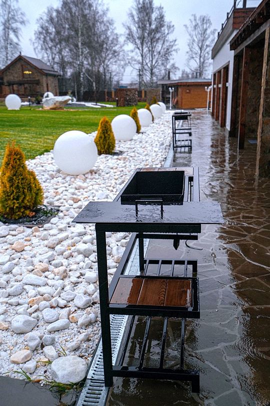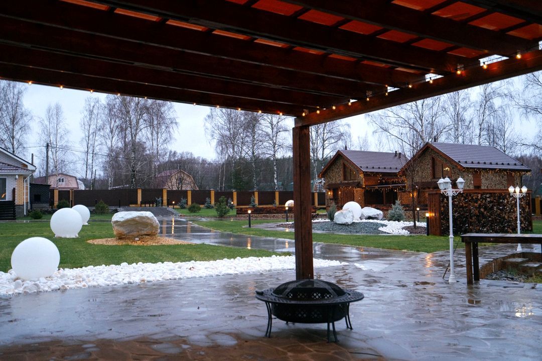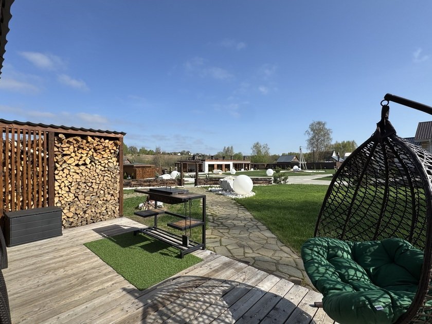 - Территория около дома с мебелью и мангальной зоной
