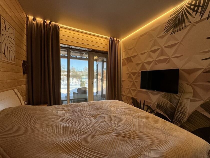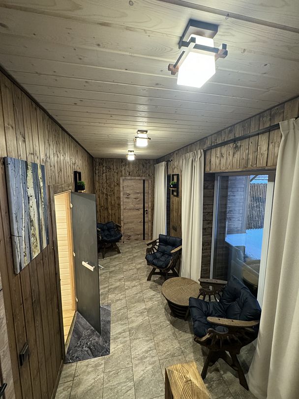Инфраструктура: чан, зона отдыха, душРасположение: выход к озеруМинимальное время аренды: 3 часаБаня, оформленная в стиле современного шале, создает уютную атмосферу, в которой можно полностью расслабиться. Сочетание дерева, камня и дизайнерских акцентов создает гармоничную обстановку. Теплый водяной пол обеспечивает приятное тепло, а вместимость бани до шести человек позволяет насладиться отдыхом в компании близких.