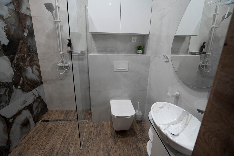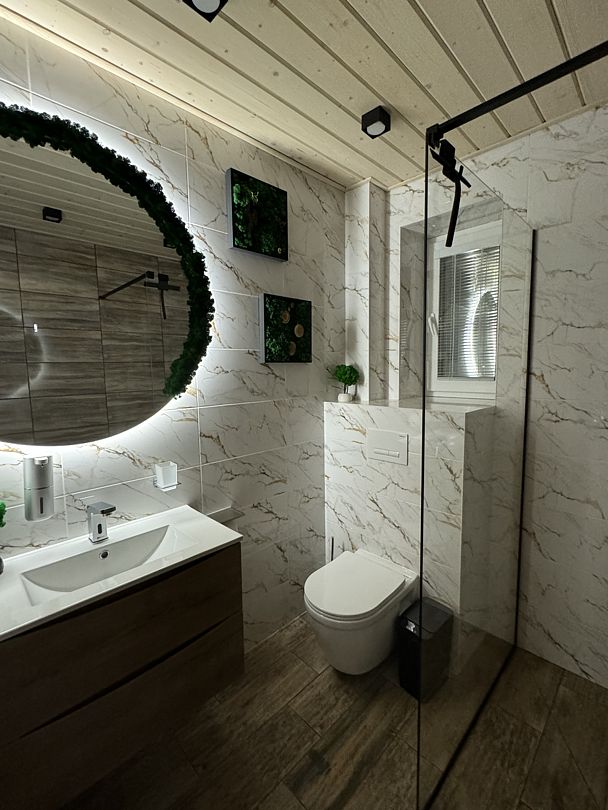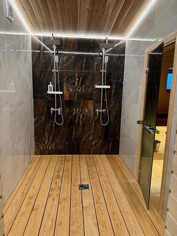 Читать полностьюБаня, оформленная в стиле современного шале, создает уютную атмосферу, в которой можно полностью расслабиться. Сочетание дерева, камня и дизайнерских акцентов создает гармоничную обстановку. Теплый водяной пол обеспечивает приятное тепло, а вместимость бани до шести человек позволяет насладиться отдыхом в компании близких.