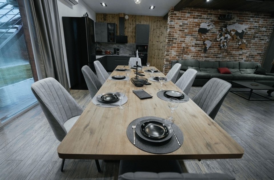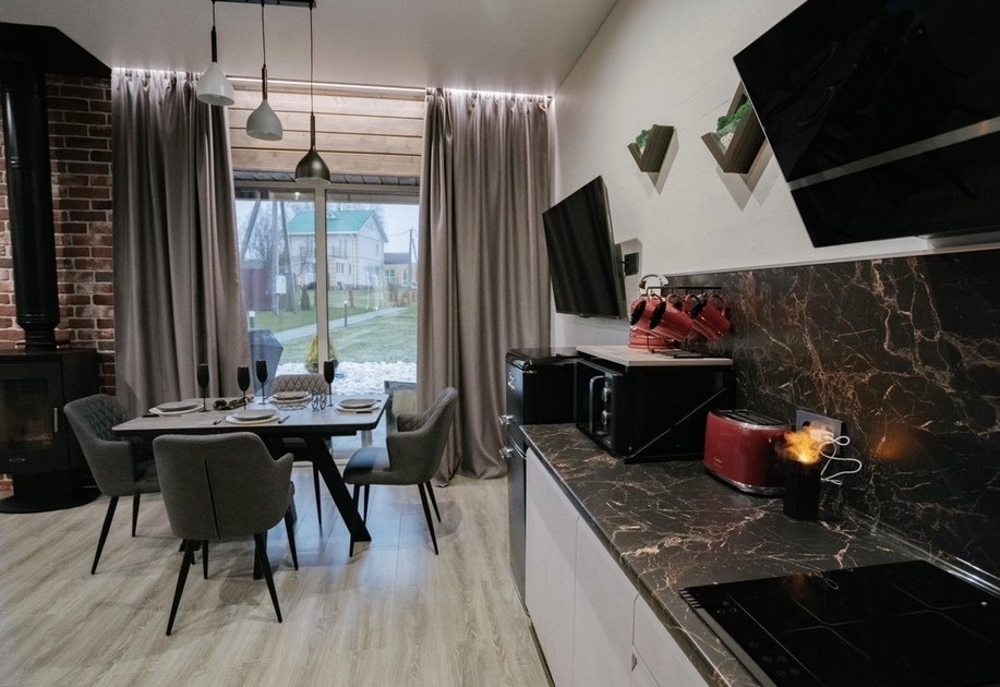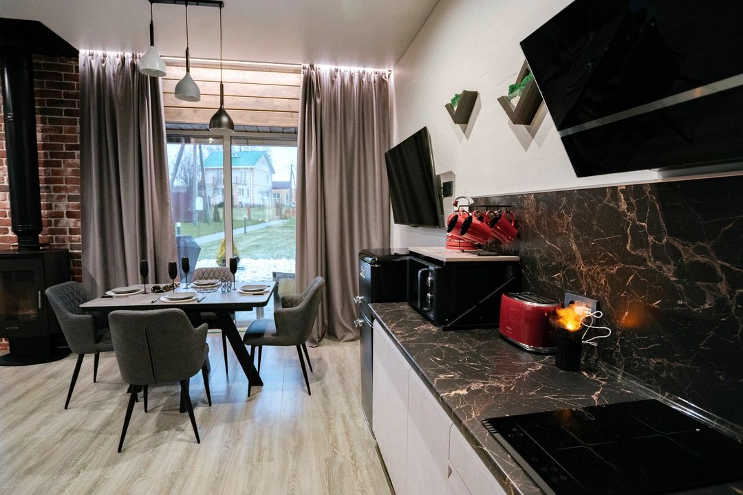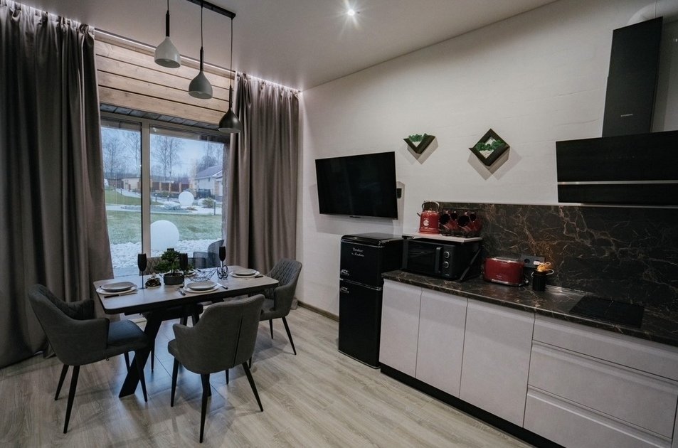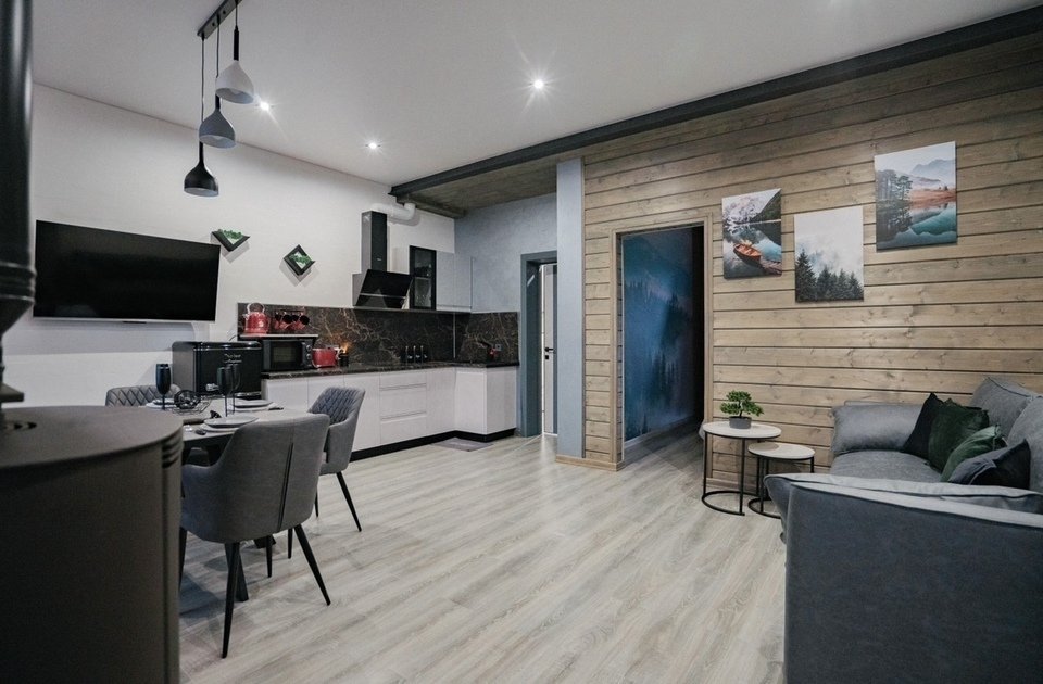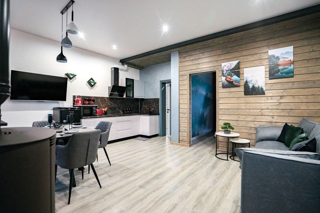 Стильный, абсолютно новый дом площадью 105 кв. м с большим камином и проектором с большим экраном в стиле лофт. Место созданное с душой и отсутствии экономии на наших гостях. Здесь есть абсолютно все, чтобы вы по-настоящему отдохнули от городской суеты.