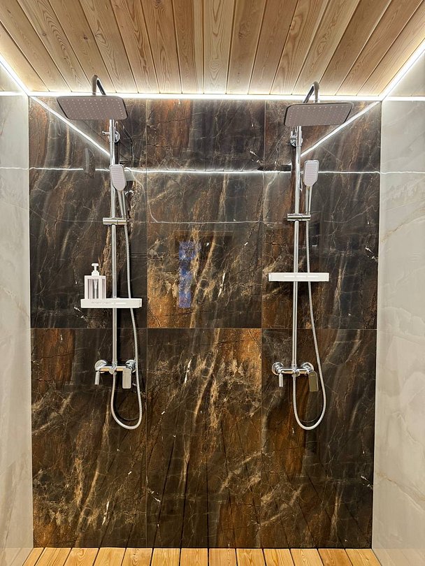 - просторная душевая с полотенцами и всеми необходимыми принадлежностями