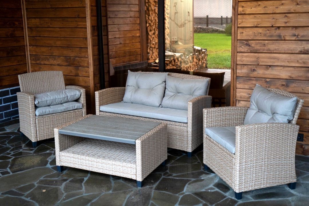 - патио на крыше с мебелью.