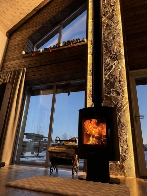 - камин на дровах, создающий особенный уют