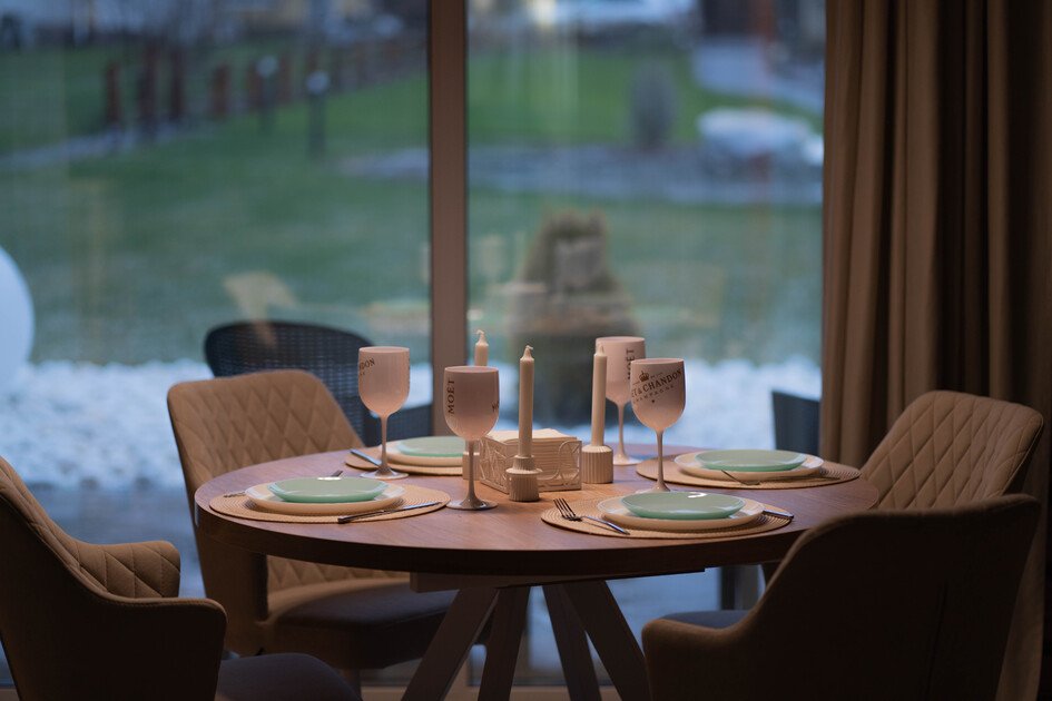Для романтиков, которые мечтают о незабываемом вечере, команда базы предлагает свечи, свежие фрукты и напитки, превращая этот момент в настоящее свидание. А если вы хотите сделать этот вечер еще более особенным, можно украсить номер шарами и лепестками роз.