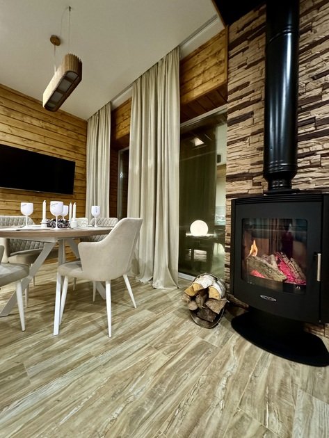 - камин на дровах, создающий особенный уют;