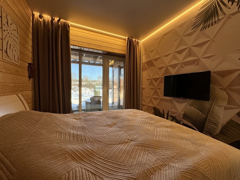 Номер с джакузи. Стильный, абсолютно новый номер площадью 55 кв. м с камином и джакузи.