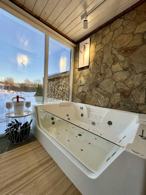 Заезд с 16:00, выезд до 13:00. Джакузи входит в стоимость номера.