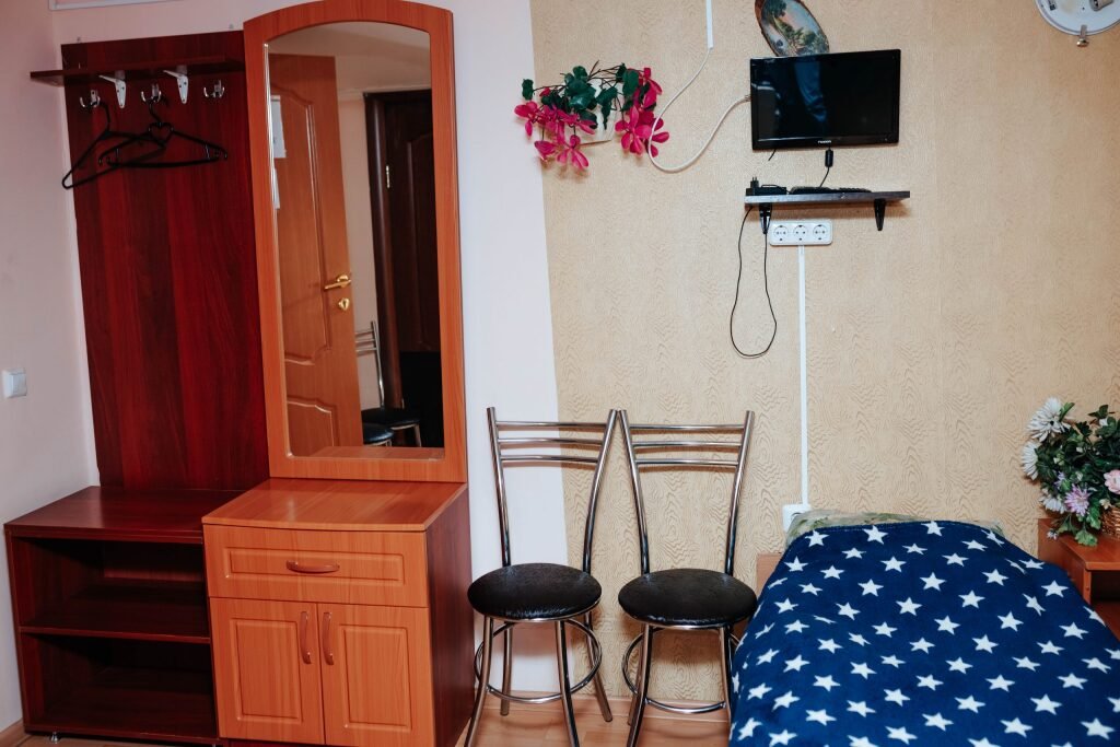 «Новинка» разместилась в одноэтажном здании и предлагает для проживания 20 номеров. Комнаты в зависимости от категории укомплектованы всем необходимым – установлены удобные кровати, есть места для хранения вещей, телевизор, холодильник, санузел. В номерах эконом-класса не предусмотрен холодильник, а удобства размещены на этаже в блоке.
