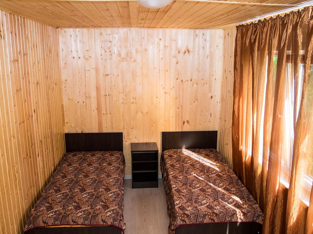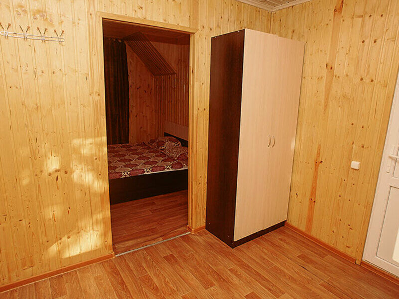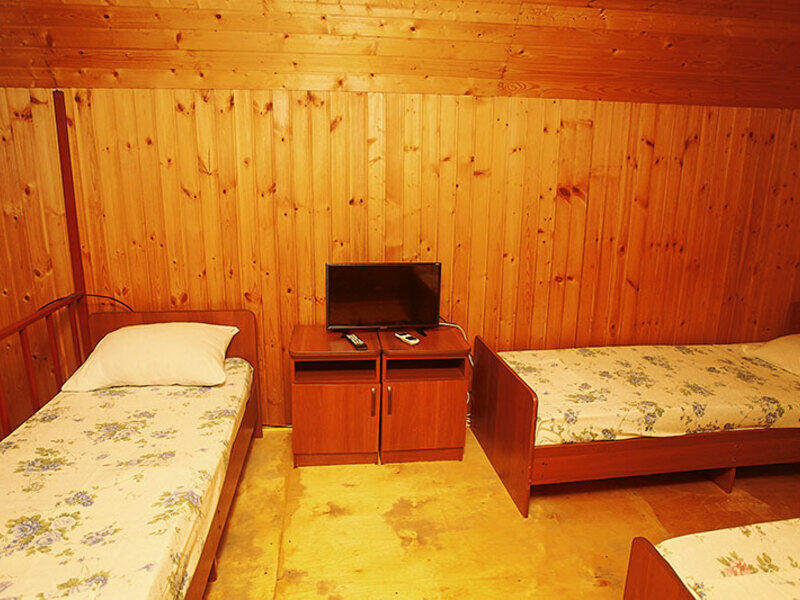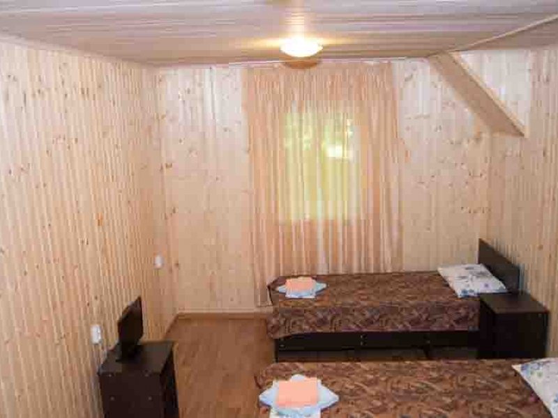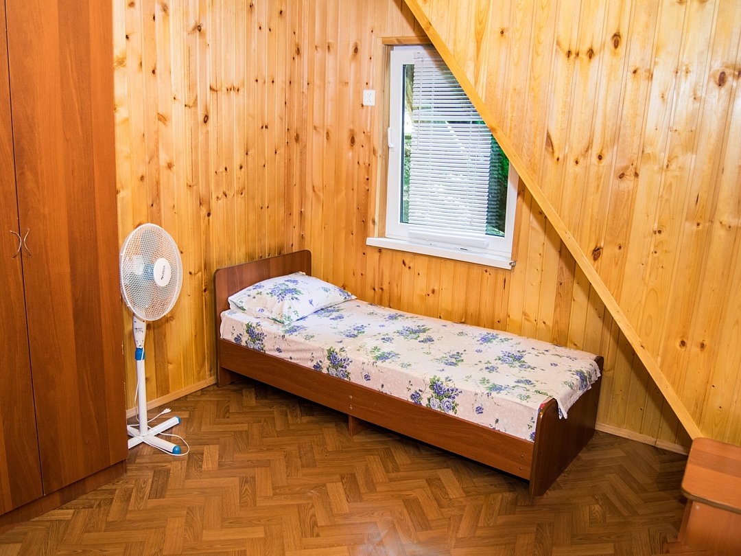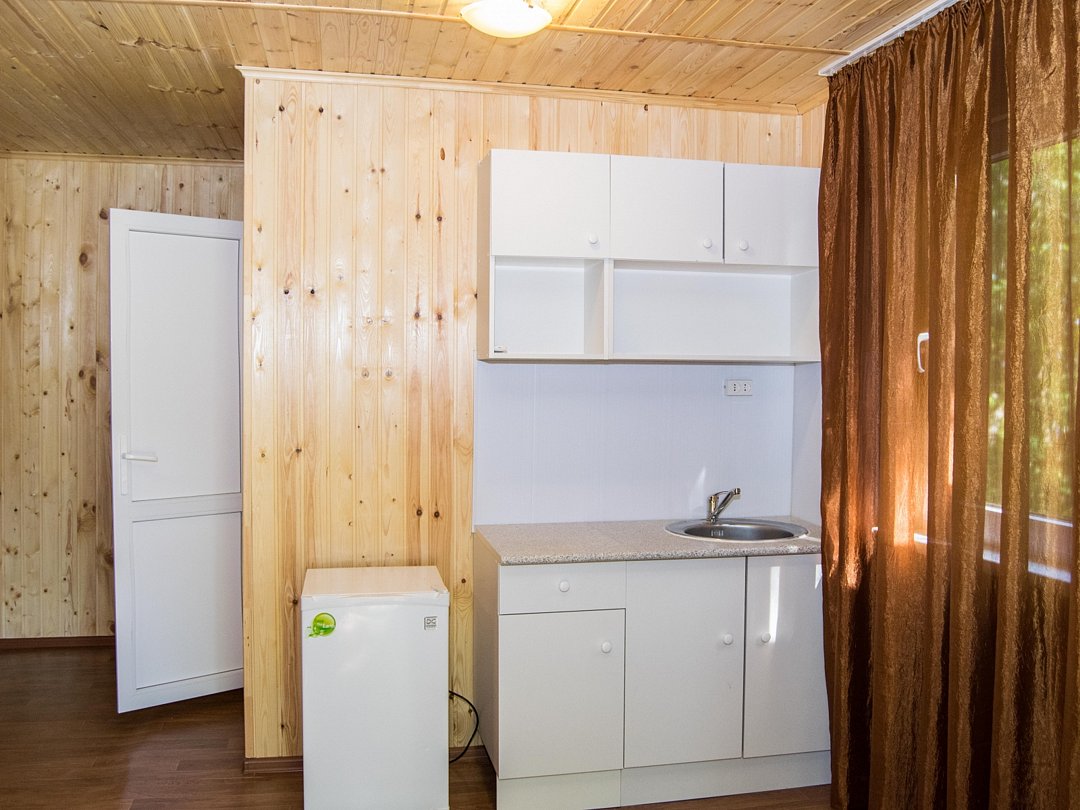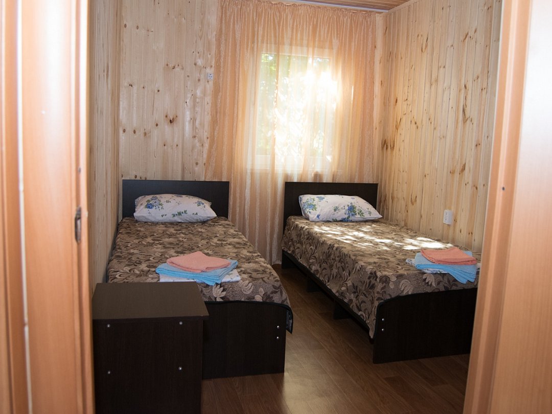 Бунгало с видом на море - это уникальный объект на нашей базе. Комфортабельный двухэтажный деревянный дом, собранный из цельного бруса. Запах натурального дерева создает непередаваемую атмосферу лесной хижины, но со всеми современными условиями. Идеально подходит для длительного проживания большой компании или большой семьи. Дом имеет две жилые комнаты, кухню-гостинную, два туалета, душевую. На втором этаже - две жилые комнаты и просторный холл. Все помещения оснащены кондиционерами. Кухня-гостинная оснащена небольшим кухонным гарнитуром, холодильником, чайником, микроволновкой, шкафчиками для посуды, телевизором. С южной стороны бунгало находится терраса с панорамным видом на море и окружающий лес. Рядом с домом можно припарковать автомобили проживающих гостей, а также оборудовать индивидуальную мангальную зону. Рядом с домом начинается спуск к морю, вам не придется идти через всю территорию базы.В номере