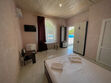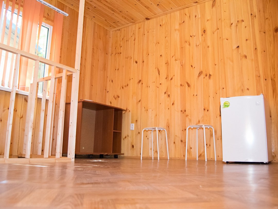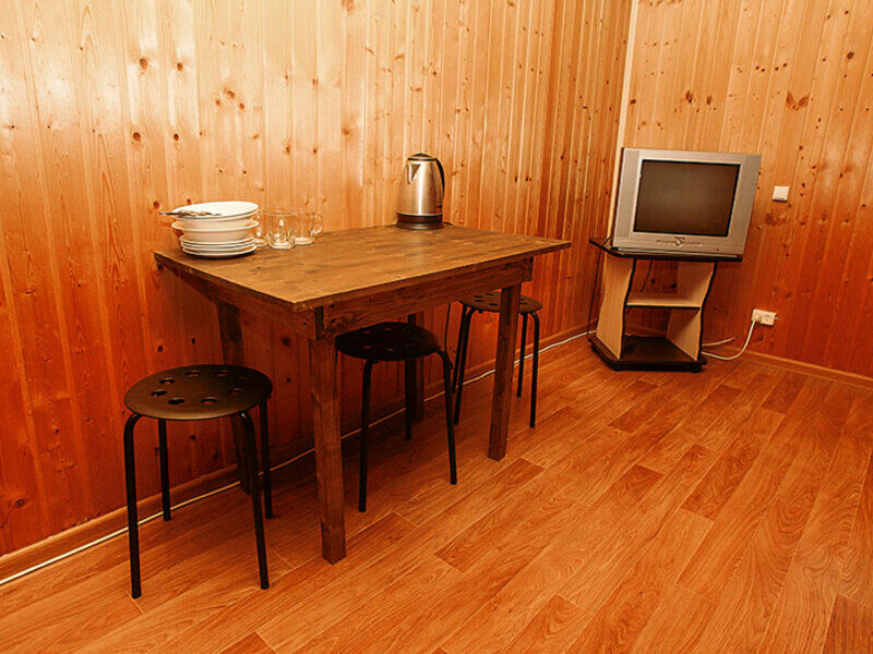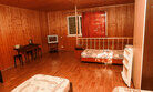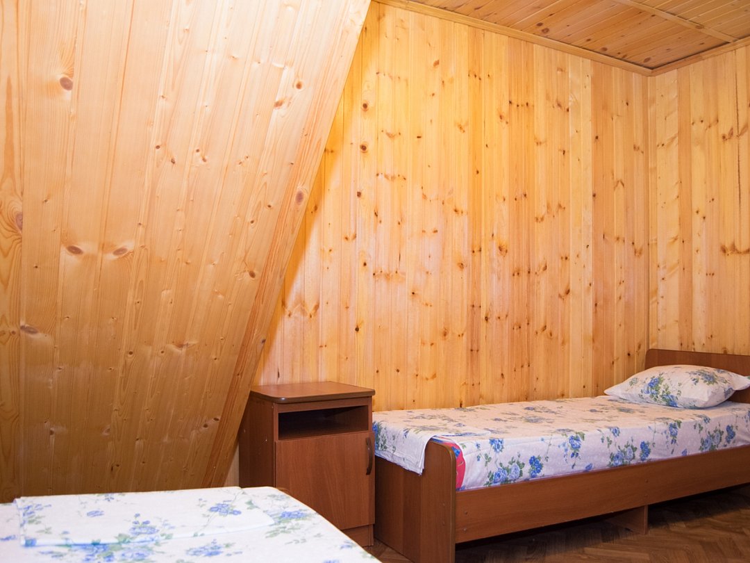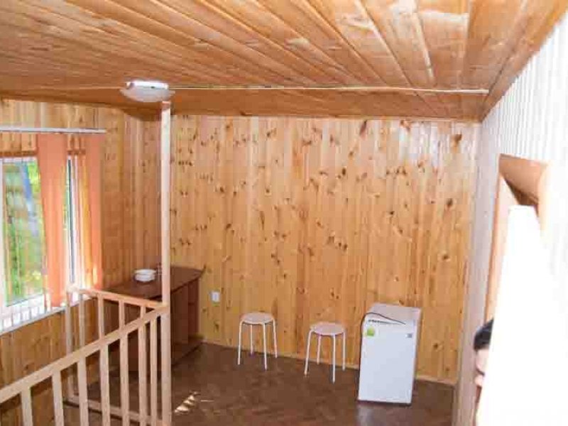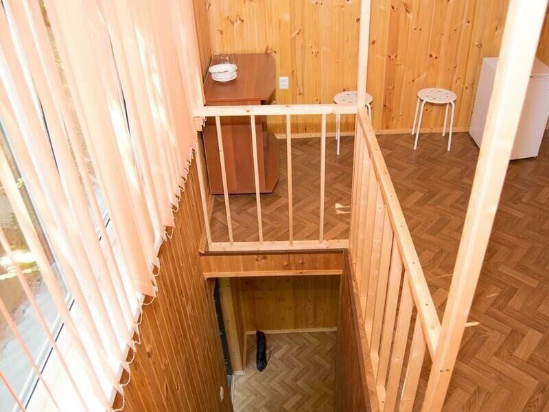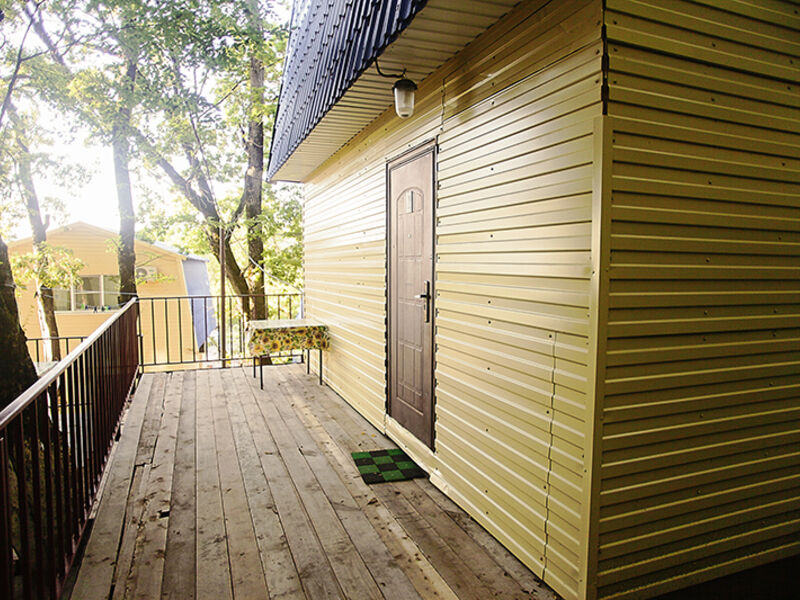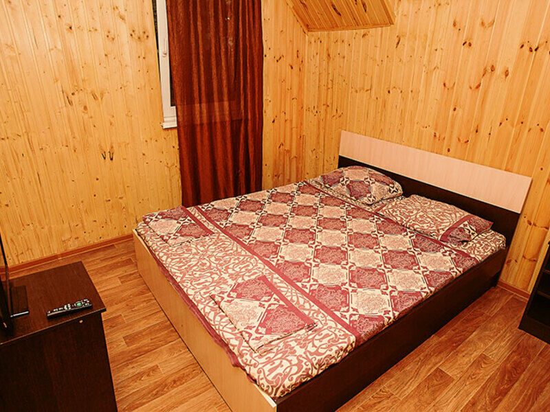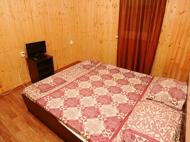 Бунгало с видом на море - это уникальный объект на нашей базе. Комфортабельный двухэтажный деревянный дом, собранный из цельного бруса. Запах натурального дерева создает непередаваемую атмосферу лесной хижины, но со всеми современными условиями. Идеально подходит для длительного проживания большой компании или большой семьи. Дом имеет две жилые комнаты, кухню-гостинную, два туалета, душевую. На втором этаже - две жилые комнаты и просторный холл. Все помещения оснащены кондиционерами. Кухня-гостинная оснащена небольшим кухонным гарнитуром, холодильником, чайником, микроволновкой, шкафчиками для посуды, телевизором. С южной стороны бунгало находится терраса с панорамным видом на море и окружающий лес. Рядом с домом можно припарковать автомобили проживающих гостей, а также оборудовать индивидуальную мангальную зону. Рядом с домом начинается спуск к морю, вам не придется идти через всю территорию базы.В номере