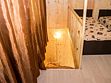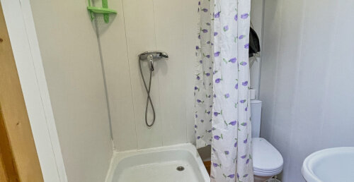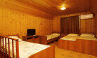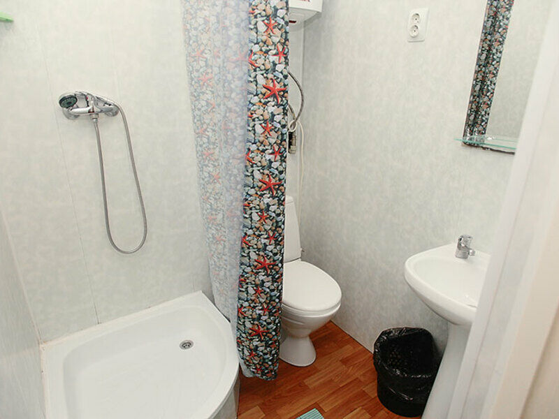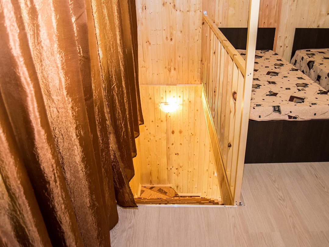Семейные апартаменты расположены в отдельном уединённо расположенном доме в лесу с видом на море. Подходят для проживания семьи с 2-мя - 4-мя детьми. Максимально вмещает до 6-ти человек. На первом этаже находится кухня-гостинная и совмещенный сан-узел. Кухня оснащена небольшим гарнитуром с раковиной, холодильником, микроволновкой, холодильником, обеденным столом, микроволновкой, чайником, шкафчиками для посуды. В зоне гостинной расположен диван, телевизор и односпальная кровать. В сан. узле находится душевая кабина, унитаз, раковина, бойлер для горячей воды. На втором этаже - две спальни: одна с двумя односпальными кроватями, вторая с тремя односпальными кроватями. Вторая комната проходная. Первая спальня оборудована шкафом для одежды. Окна из спален выходят в лес. На входе в домик находится небольшая терраса, с которой открывается вид на море сквозь лес.В номере
