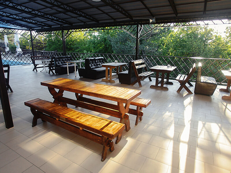 К услугам гостей - открытый бассейн с морской водой и зоной отдыха, беседки, мангал, бесплатная автомобильная парковка, столовая и бар у бассейна.