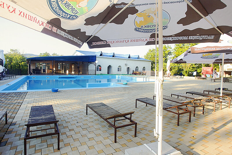 Короткий отпуск с друзьямиОчень хорошее местоНам посоветовали эту базу знакомые. И мы не разочаровались. Территория очень ухоженная. Домики чистые и удобные. Бассейн просто вне всяких похвал. Хоть и не очень большой, но не было тесно. Чистая морская и очень тёплая.