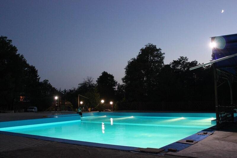Сезонный бассейн объемом 400 м³ функционирует на территории базы отдыха.
