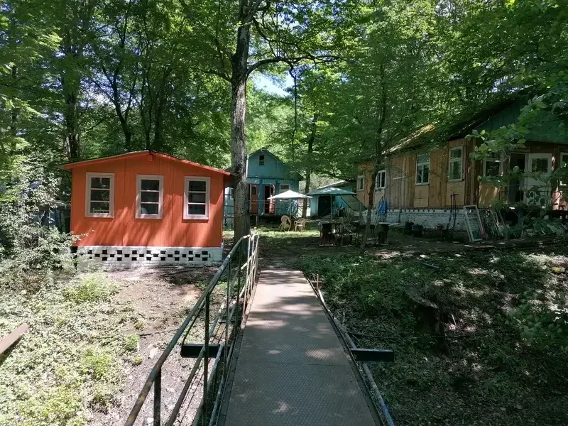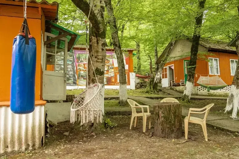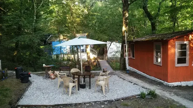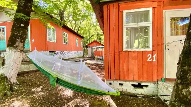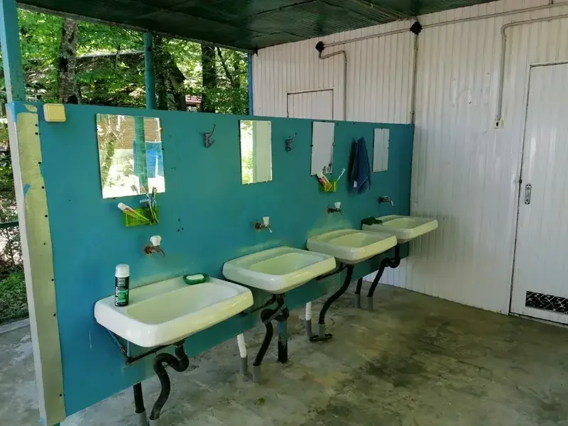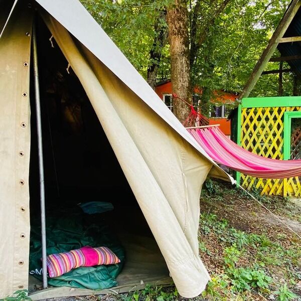 Место под палатку с предоставлением парковки. Гости могут пользоваться всеми услугами базы отдыха: прекрасно оборудовано кухней, мангальными зонами для отдыха, душ, туалет, горячая вода.