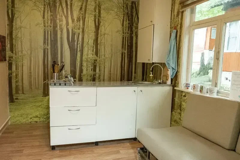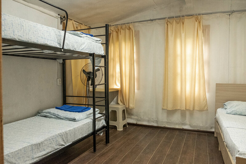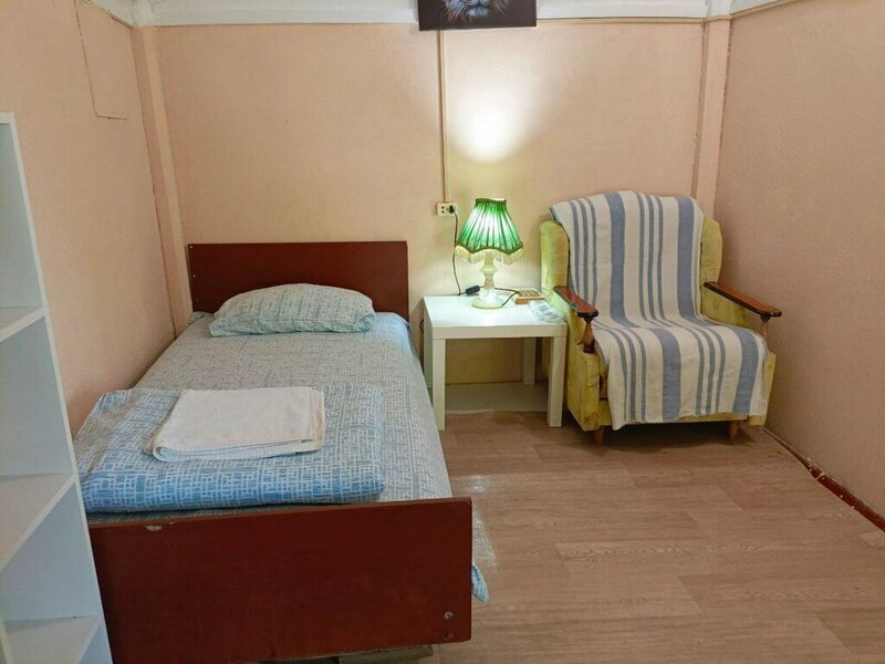 Кровать односпальная, мебель, постельное белье, полотенце, вентилятор. Общие душ и туалеты на все номера, общая кухня