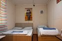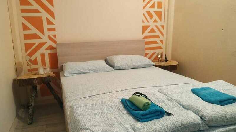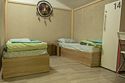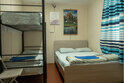 Кровать двухспальная либо 2 односпальные, мебель, постельное белье, полотенце, вентилятор. Общие душ и туалеты на все номера, общая кухня
