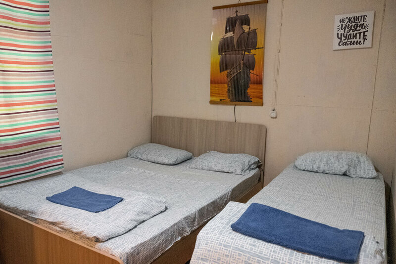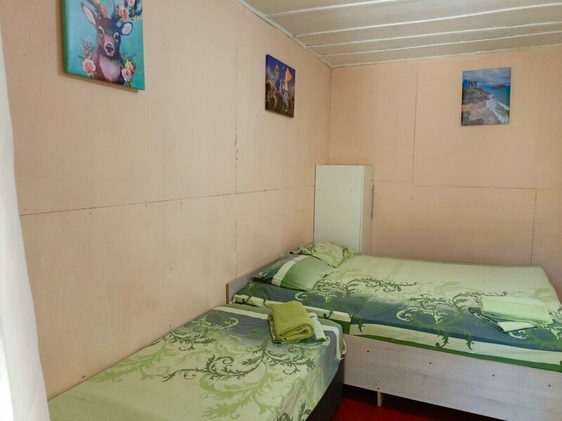 Кровать двухспальная и односпальная, мебель, постельное белье, полотенце, вентилятор. Общие душ и туалеты на все номера, общая кухня
