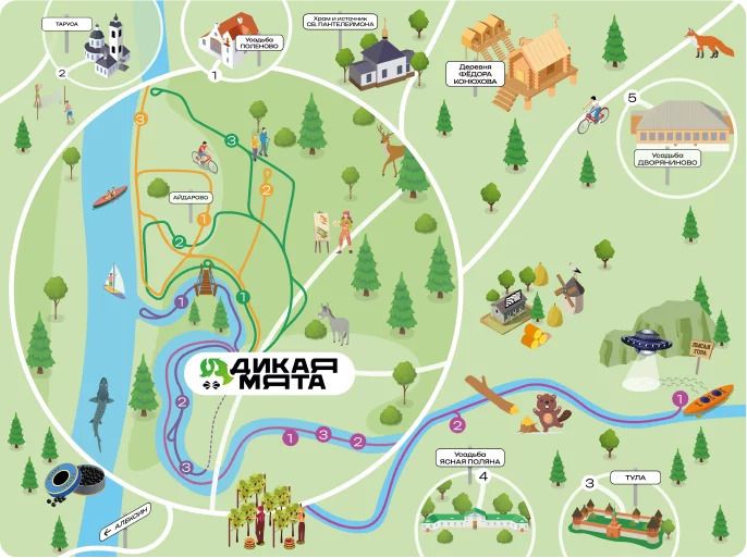Для вашего удобства вся полезная информация по туристическим маршрутам в радиусе 80 км от арт-кэмпа собрана на интерактивных картах, которые размещены в каждом доме.