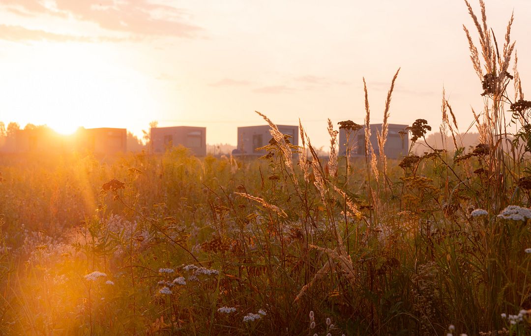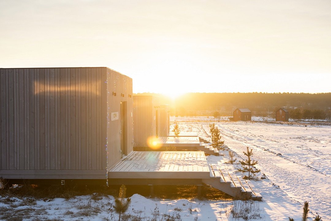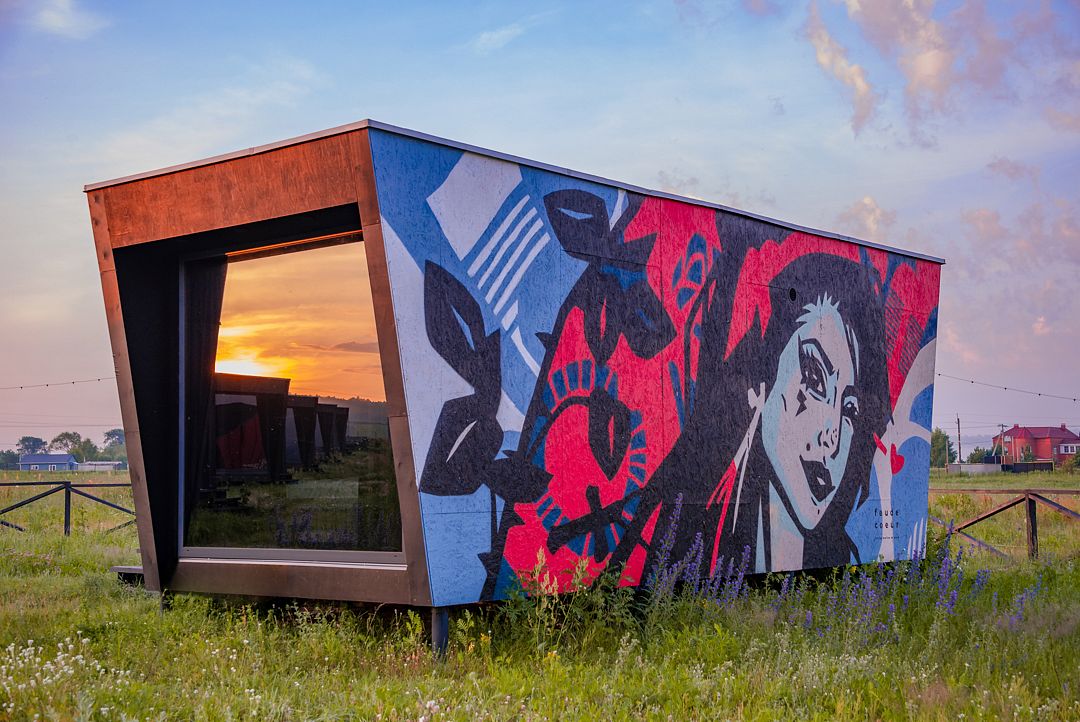 Дома стоят посреди поля легендарного фестиваля «Дикая Мята», в окружении леса и реки, из каждого окна открывается живописный вид. Вы сможете любоваться невероятно красивыми рассветами и закатами, расположившись на своей собственной видовой террасе.