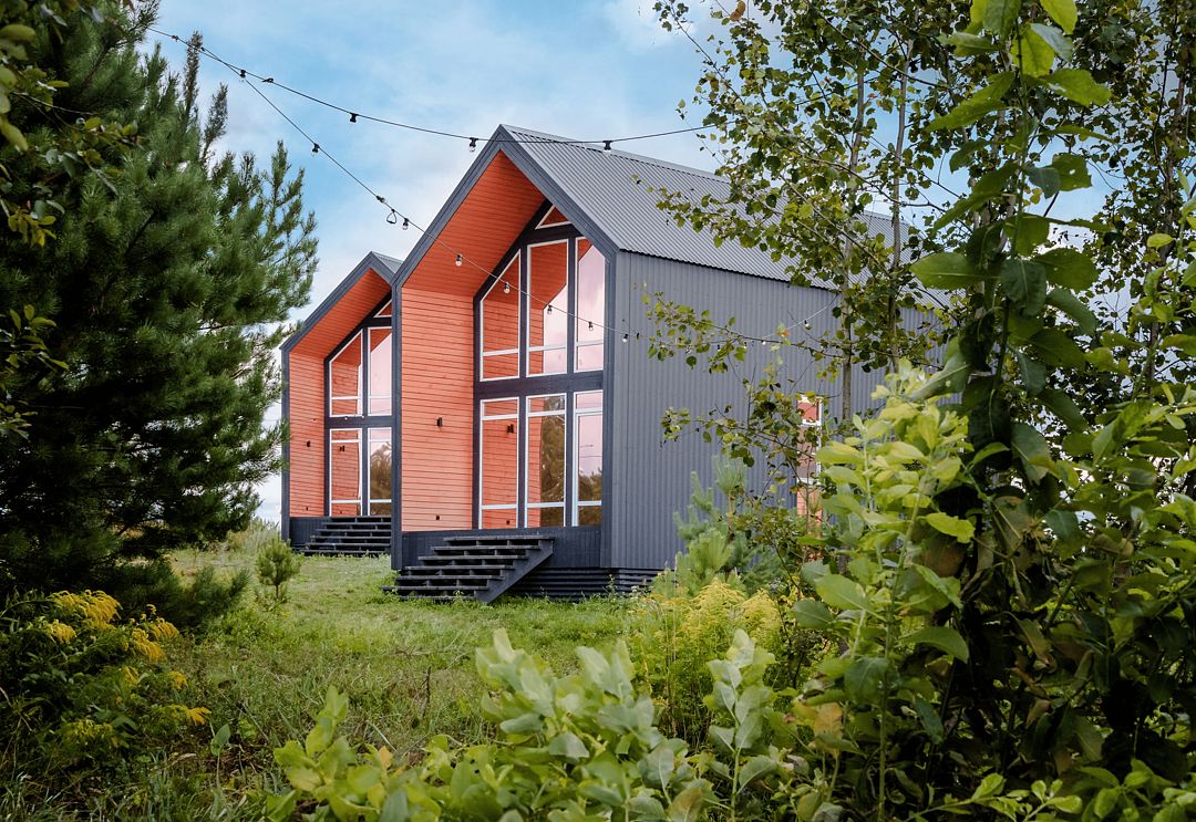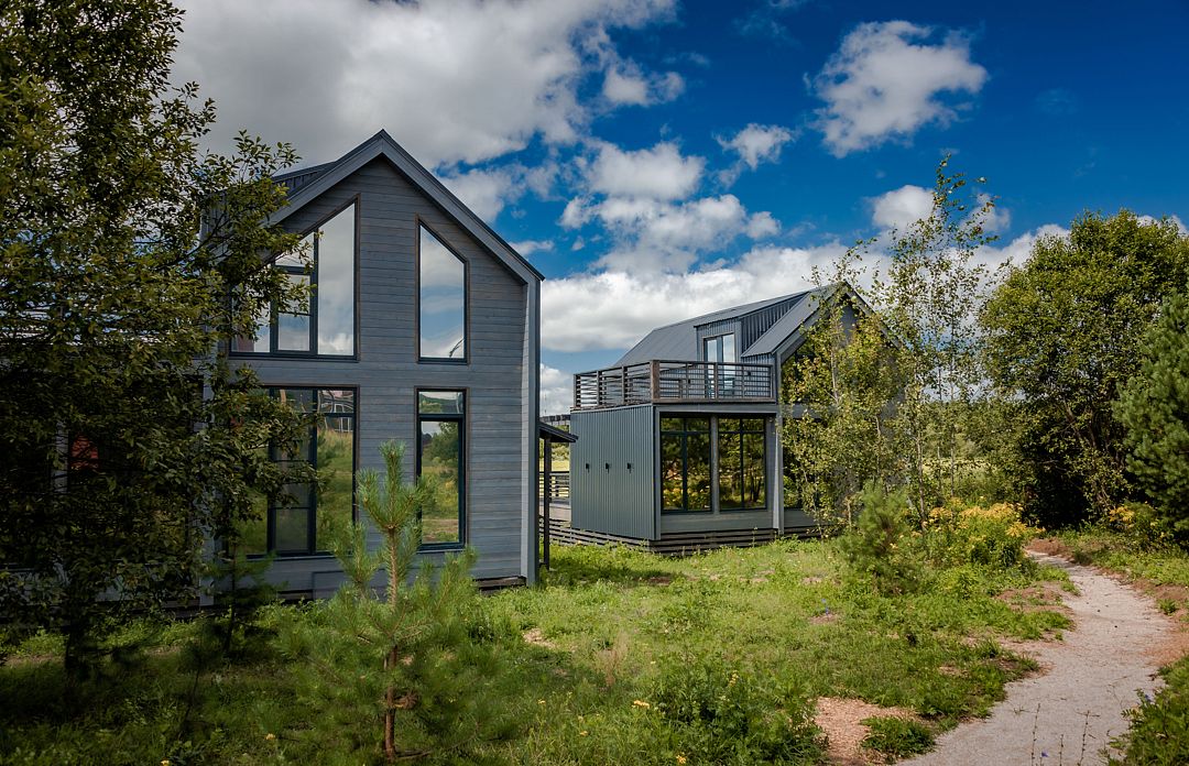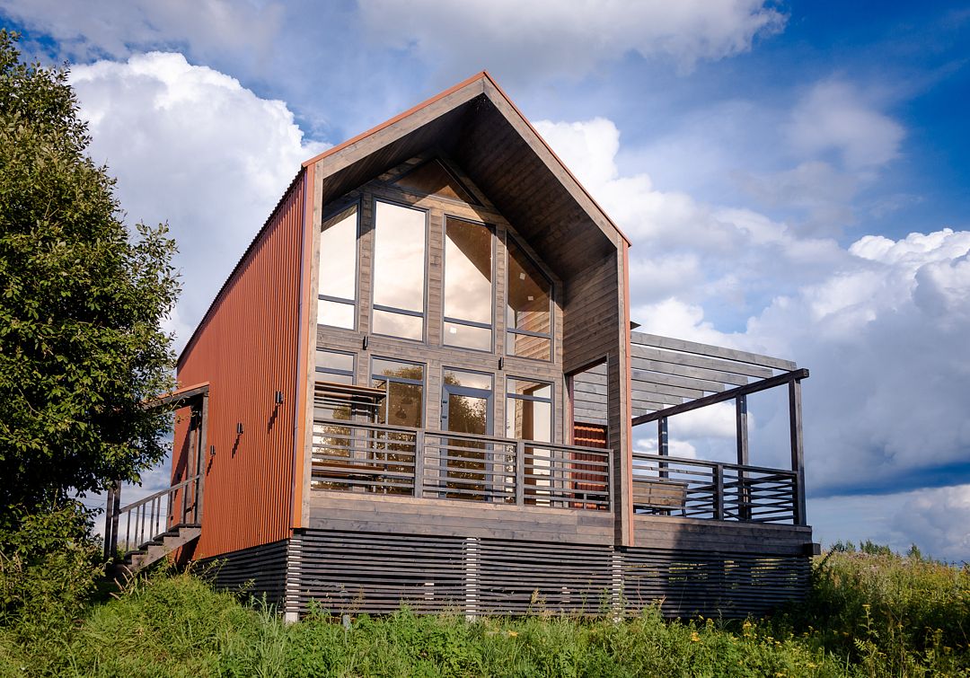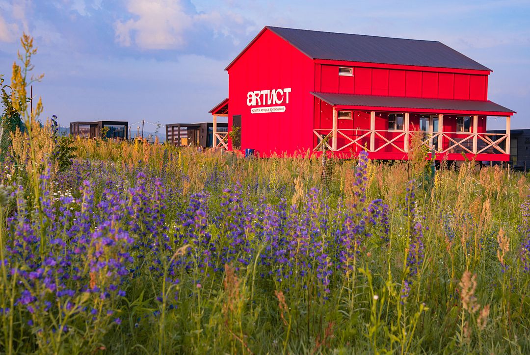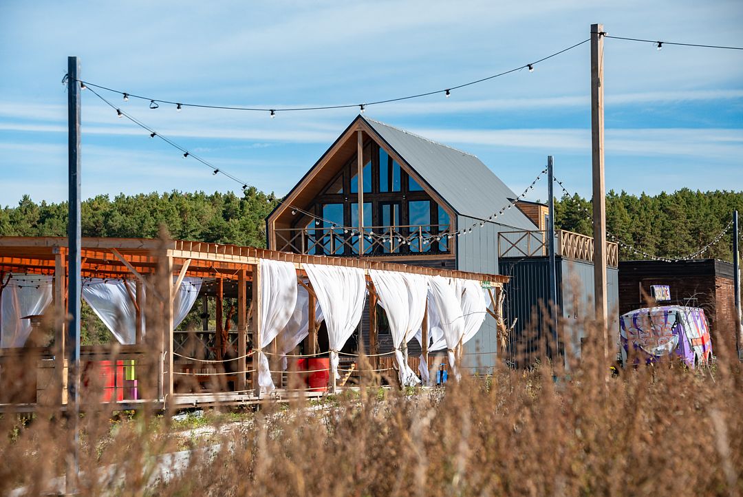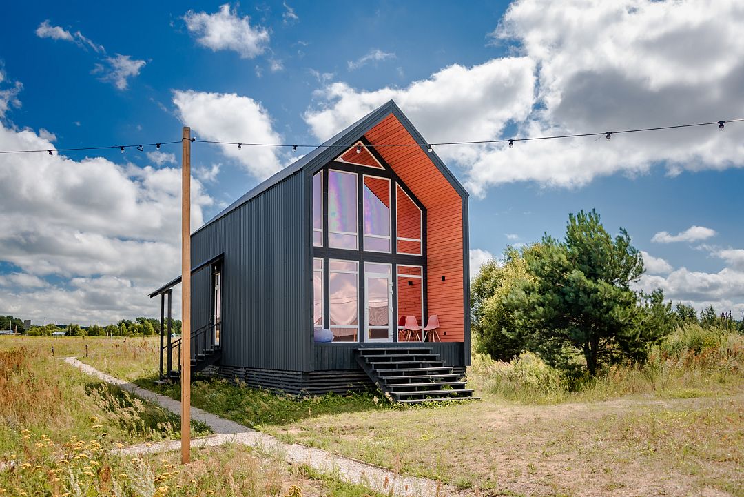 Дома стоят посреди поля легендарного фестиваля «Дикая Мята», в окружении леса и реки, из каждого окна открывается живописный вид.