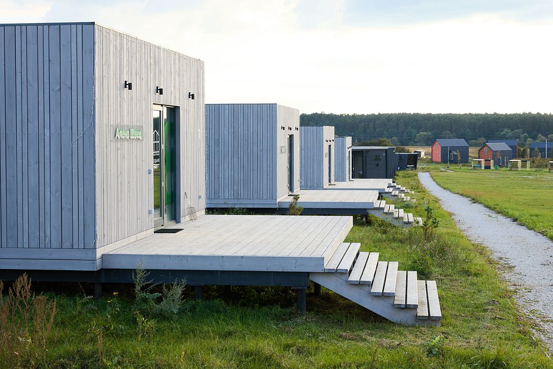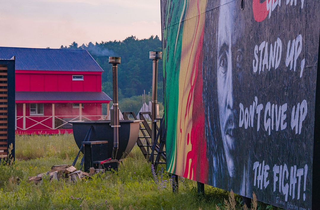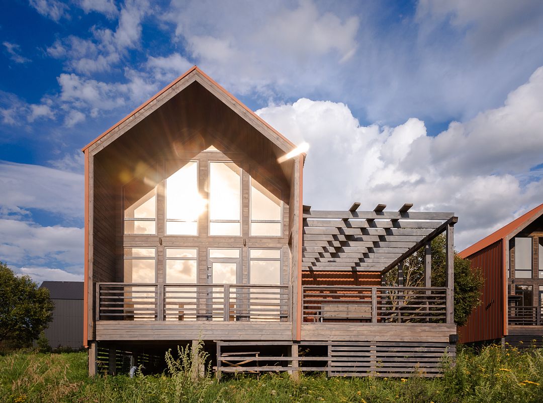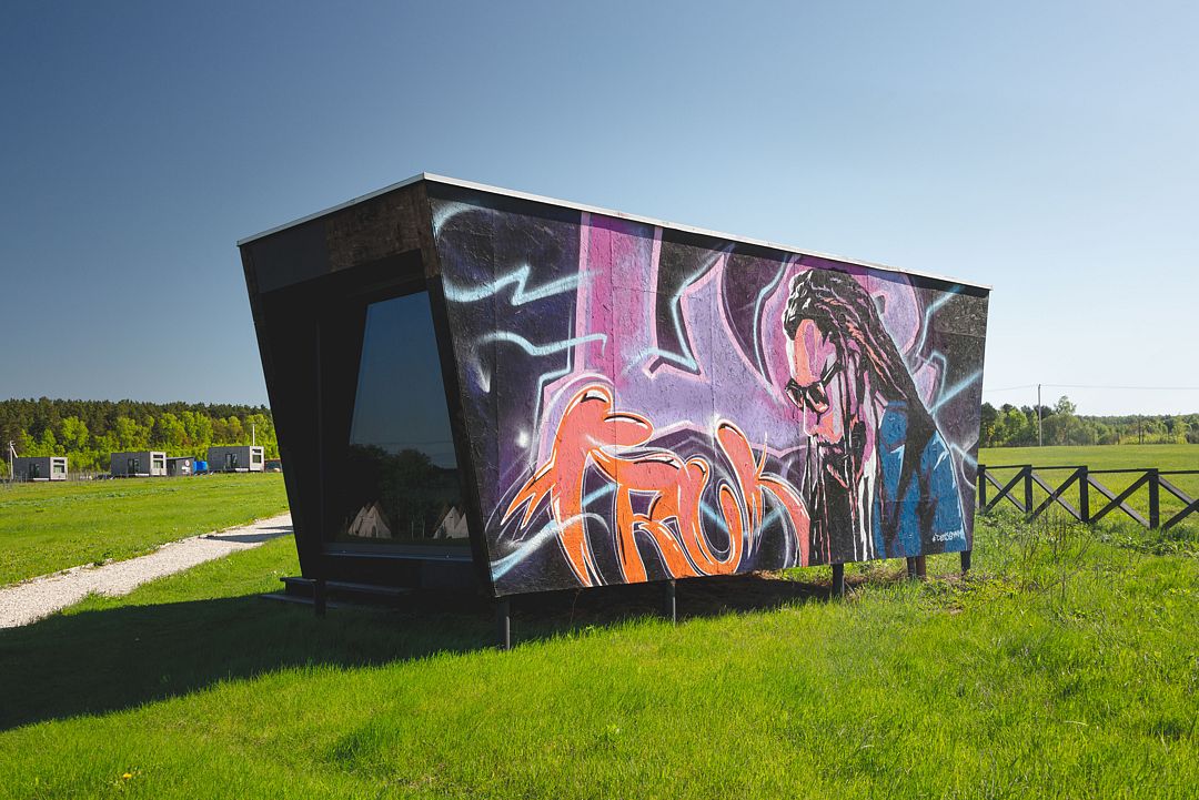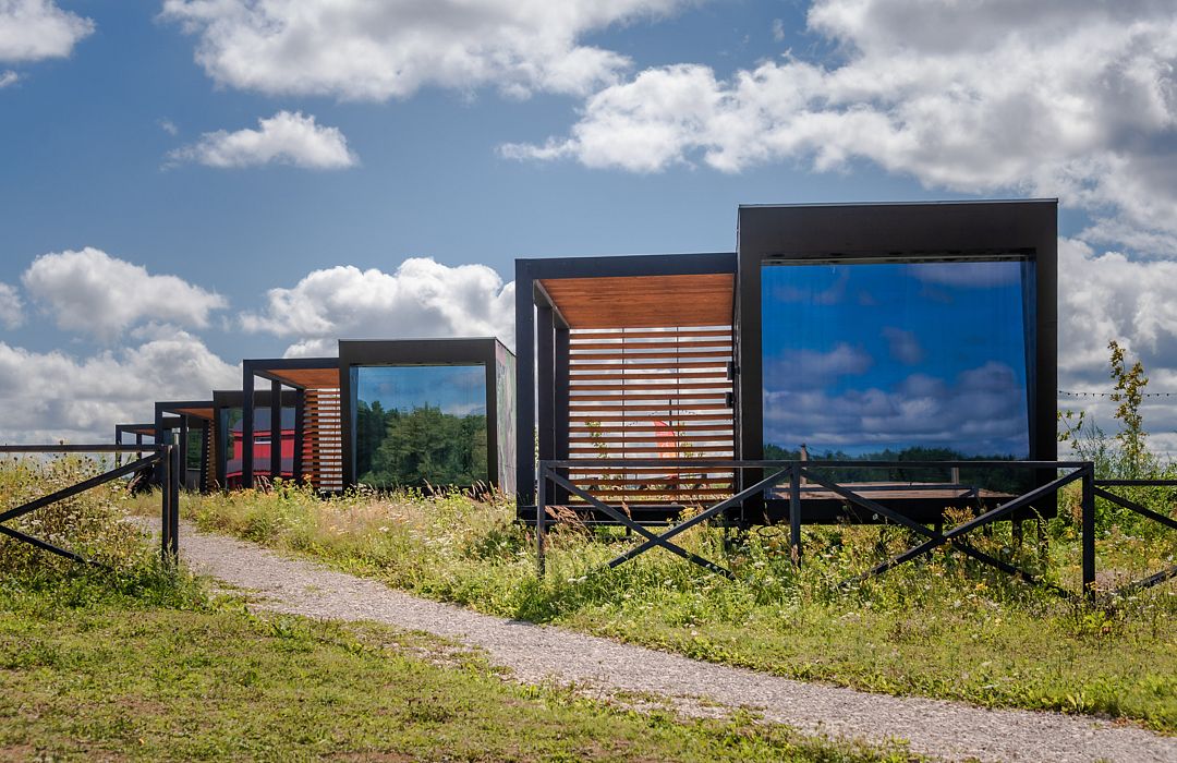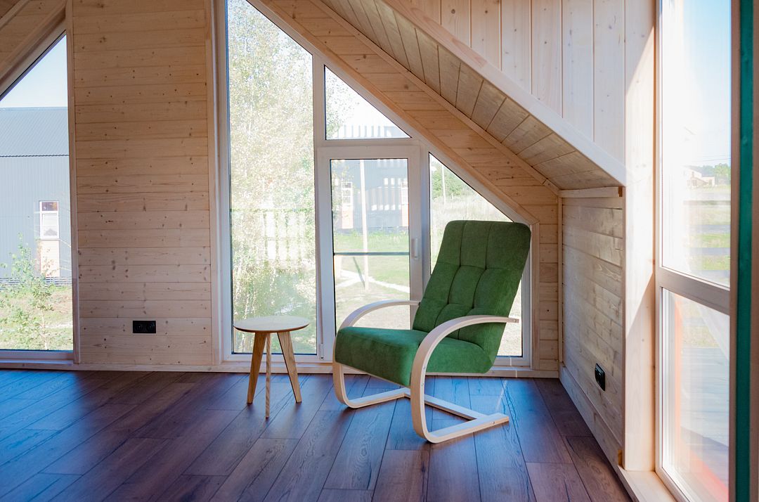 Дома стоят посреди поля легендарного фестиваля «Дикая Мята», в окружении леса и реки, из каждого окна открывается живописный вид.