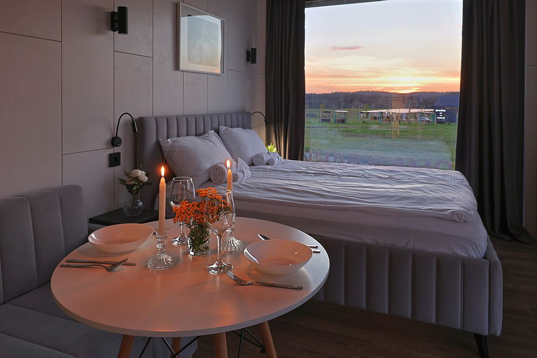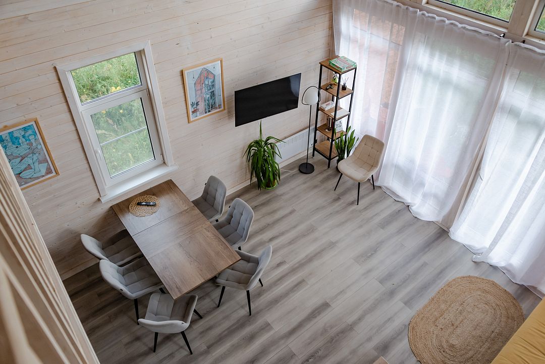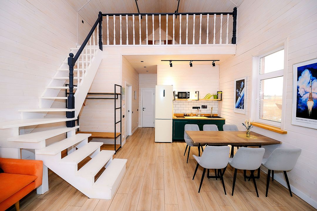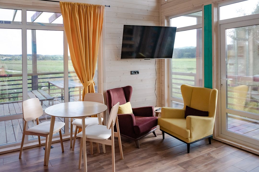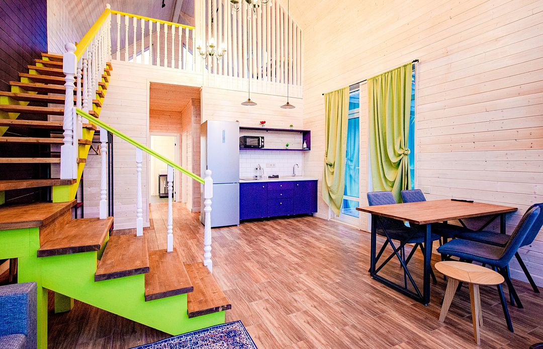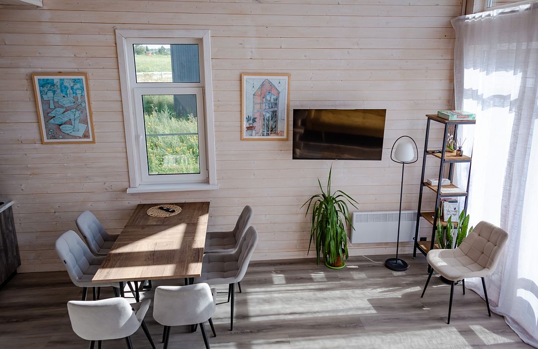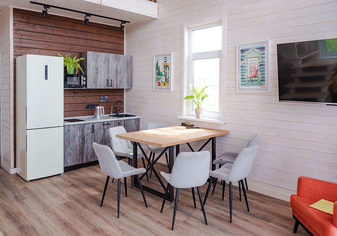 Для аренды оборудовано несколько уютных домиков, каждый из которых отличается своим уникальным характером — это и смелый современный стиль, и более классические варианты. Благодаря этому разнообразию, каждый сможет найти обстановку, которая придётся по душе.