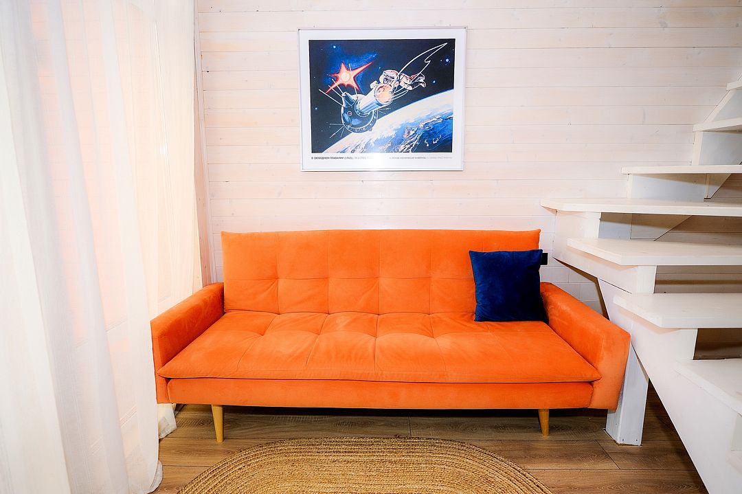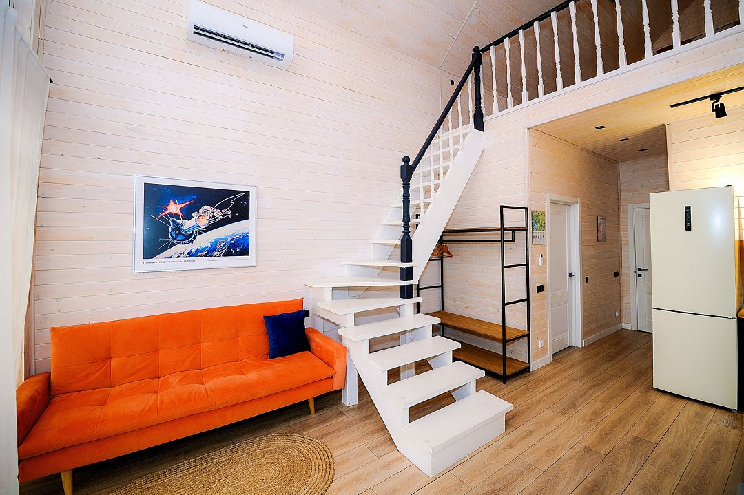 Уютный 1-комнатный дом — отличный выбор для отдыха, романтики и каникул для одного-двоих человек. Возможно дополнительное размещение 1-2 детей на встроенной кровати-антресоли.