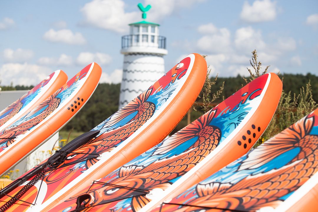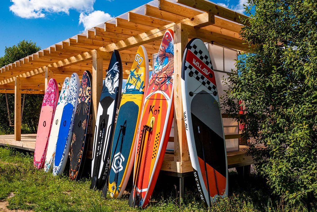 В летнее время в арт-кэмпе можно взять в аренду sup-борды, чтобы совершить прогулку по рекам Вашана и Ока.
