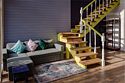 - просторная спальня: двуспальная кровать (180 см.), прикроватные тумбочки, стеллаж. Из спальни на втором этаже открывается вид на гостиную.