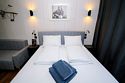 Спальные места: двуспальная кровать (ширина 160см.) и раскладной диван для одного гостя (ширина 120см.)