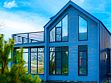 Стильно оформленный одноэтажный дом с панорамным окном во всю стену.