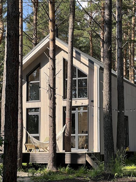 В каждом доме есть для гостей бесплатный WiFi. На территории мангальная и костровая зона, просторная терраса с удобной садовой мебелью, гамак перед террасой в лесу.