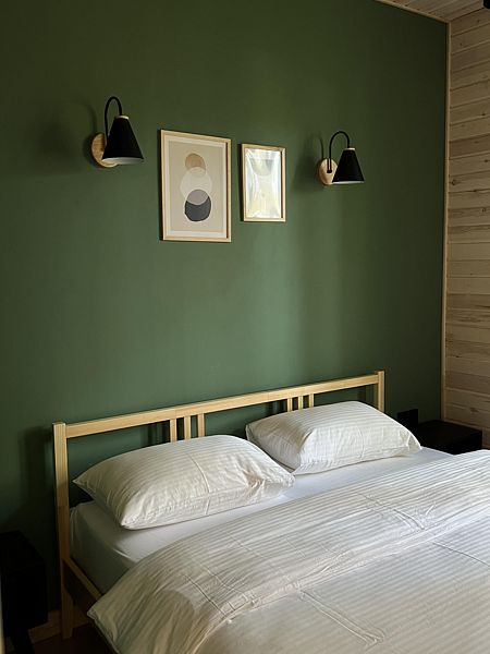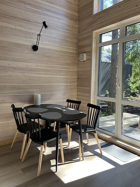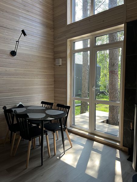 Максимальная вместимость домов 4 взрослых + 1 взрослый на доп. месте (раскладной диван) либо, 4 взрослых + 2 ребенка на доп. месте (раскладной диван).