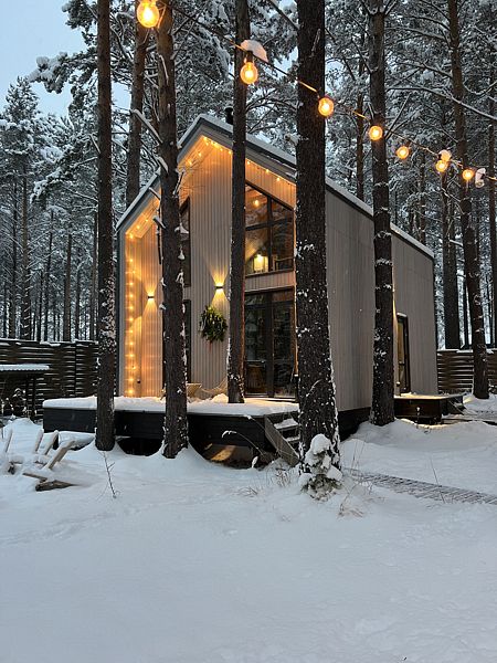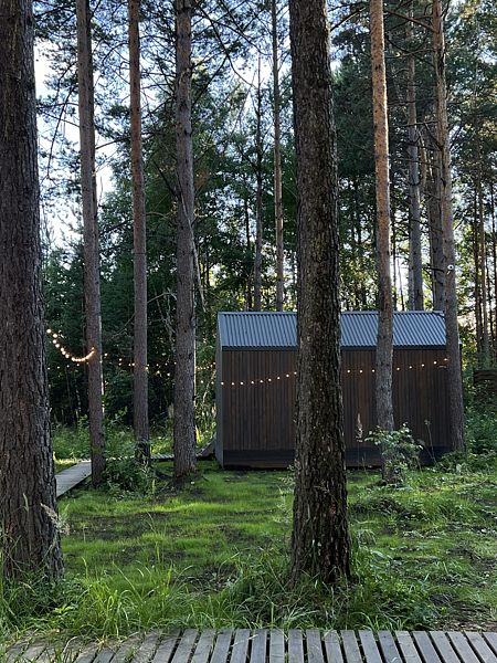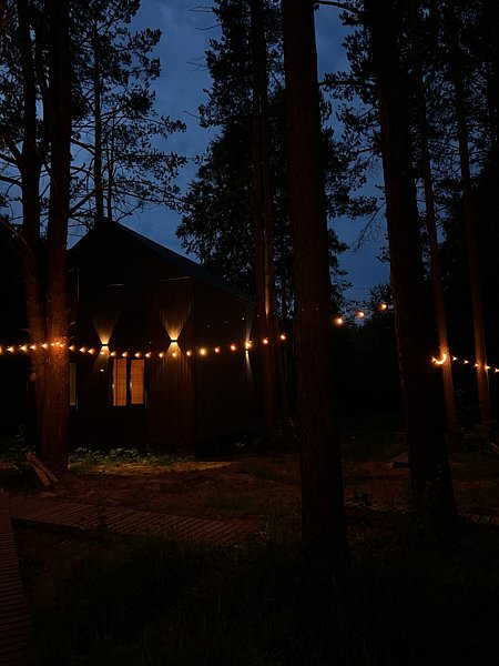 У каждого дома индивидуальные мангальные и костровые зоны. На территории работает бесплатный Wi-Fi, а также имеется сауна с панорамным видом на лес.