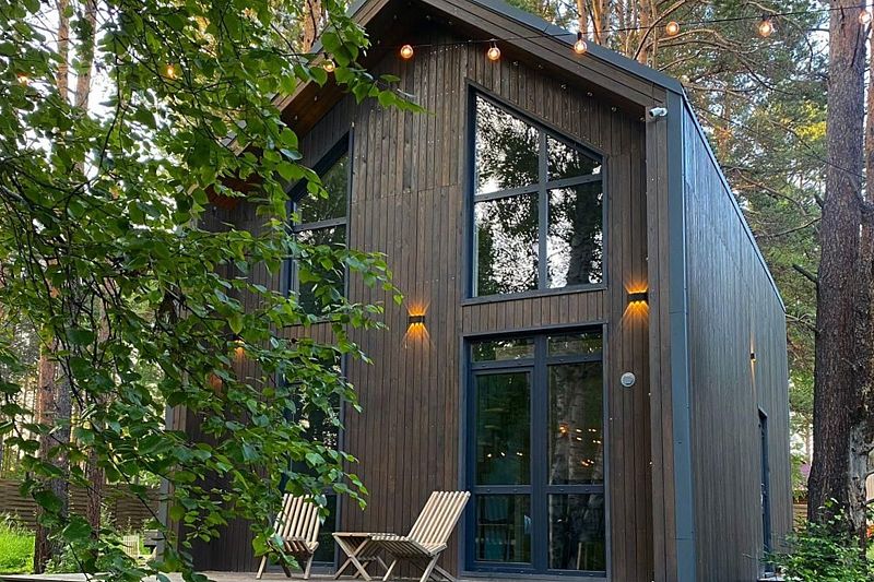 Максимальная вместимость домов 4 взрослых + 1 взрослый на доп. месте (раскладной диван), либо 4 взрослых + 2 детей на доп. месте (раскладной диван).