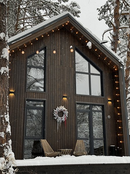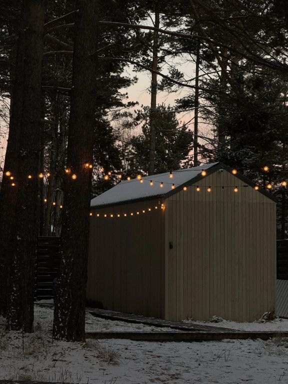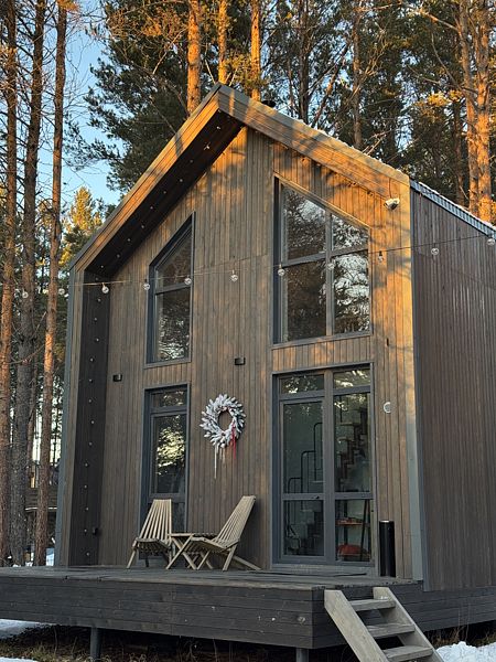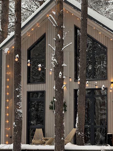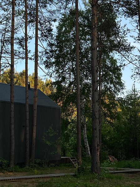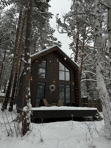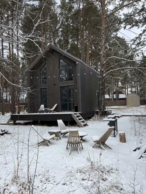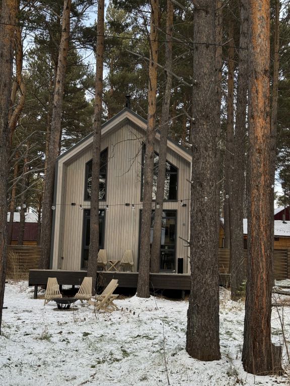 Откройте для себя очаровательные домики в глэмпинге «Hygge Barn», укрывшиеся в живописном сосновом лесу на берегу реки в поселке Бурдугуз, Иркутская область.