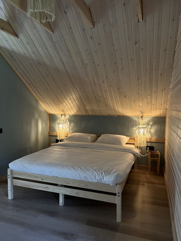 На 2 этаже располагается двуспальная кровать с таким же удобным матрасом.