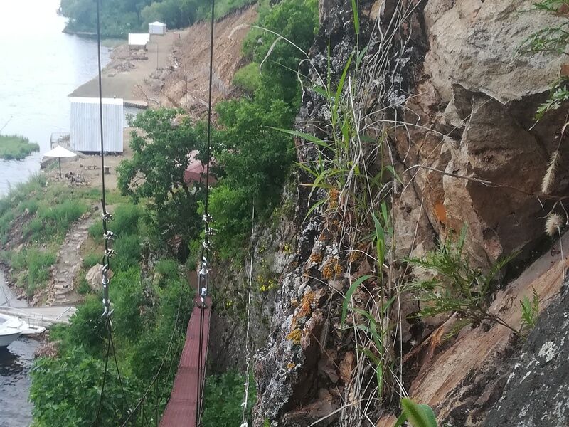 Спуск в сопровождении инструктора по сорокаметровой стене, на верёвке с применением альпинистского снаряжения.