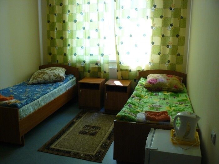 В номере: с/у, душ, кровать, постельные принадлежности, тумбочки, шкаф, холодильник, ТВ, чайник.