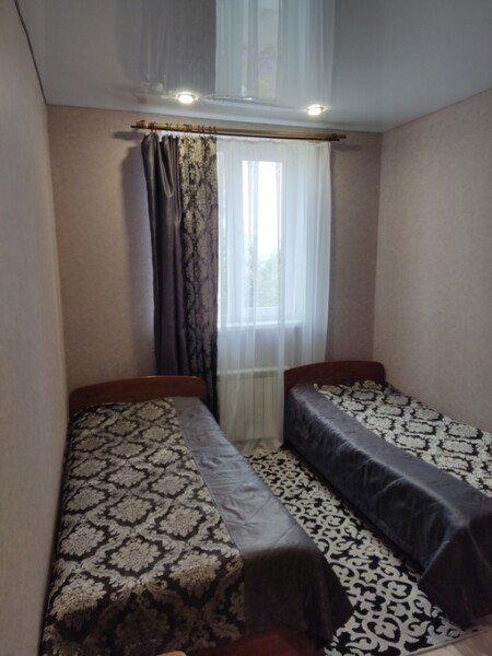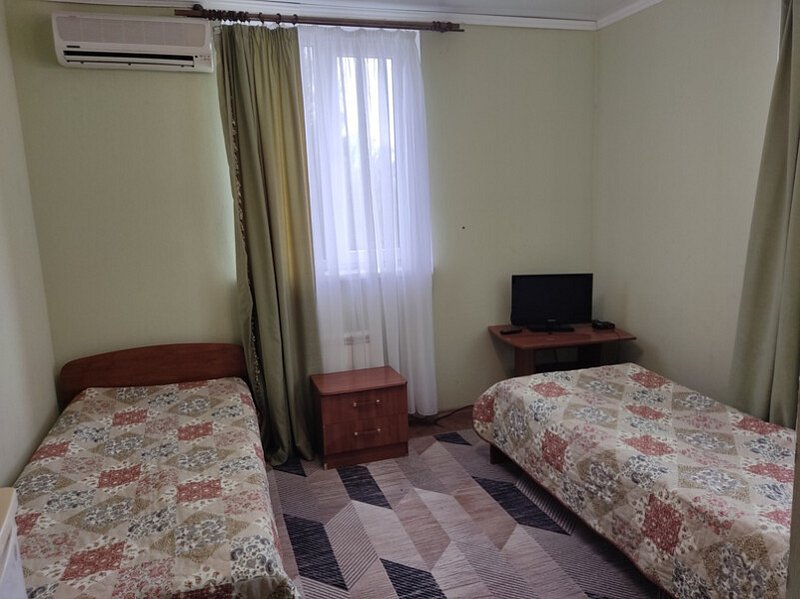 2-е полуторных кровати (можно сдвинуть). В номере: ТВ, Wi-Fi, холодильник, кондиционер, санузел с душевой, принадлежности для ванной.