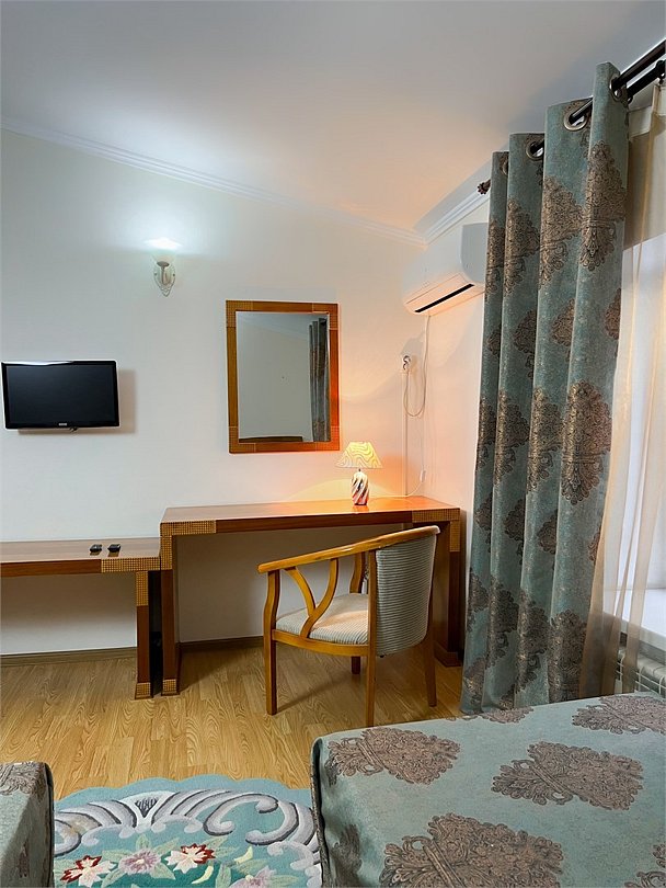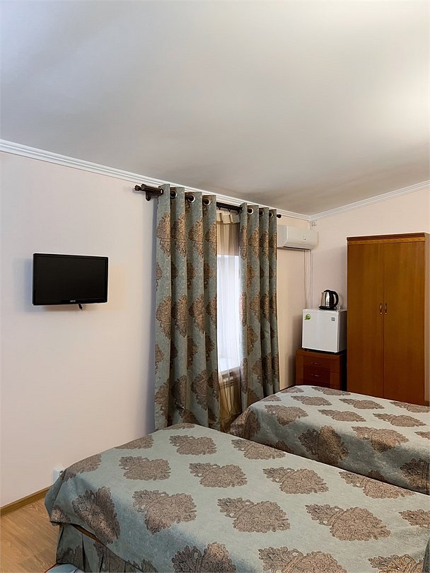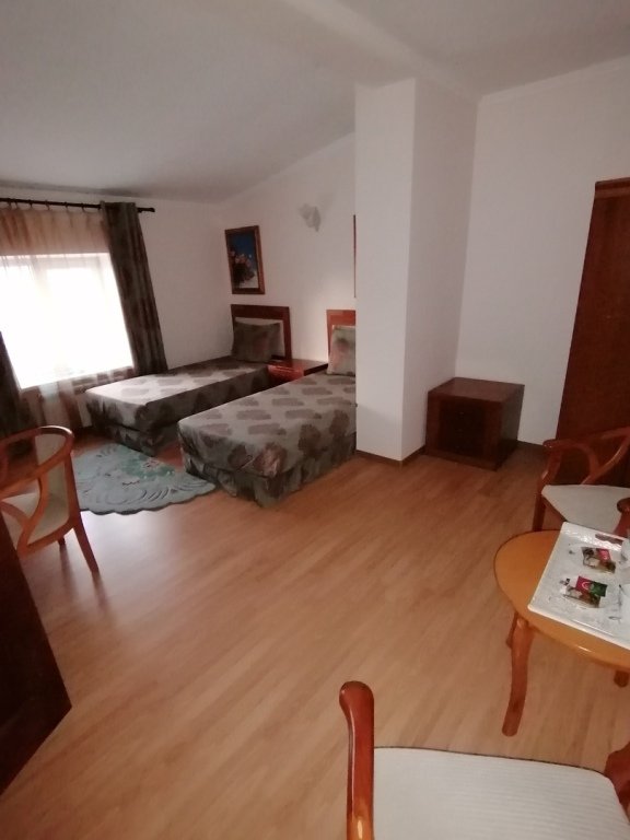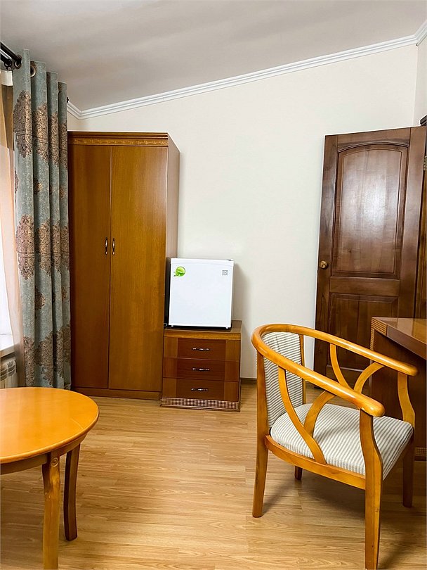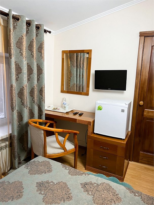 Двухместный, двухкомнатный, просторный номер с удобными полутороспальными кроватями рабочими столами, двумя креслами и столиком, двумя ЖК-телевизорами и компактным туалетом, который совмещен с умывальником и душем. Идеальный вариант для командировочных поездок, А так же останавливающимся в отеле на короткое время.