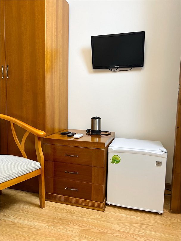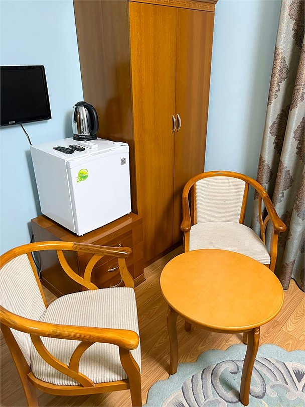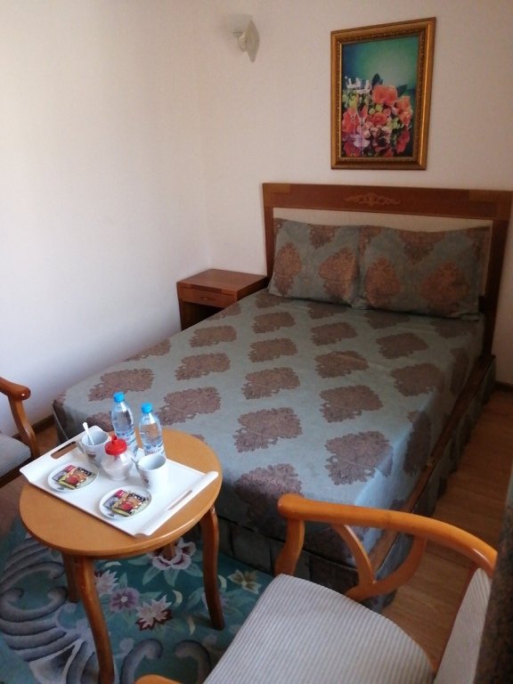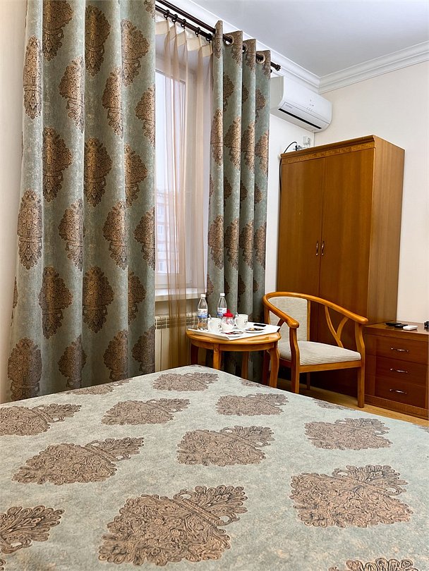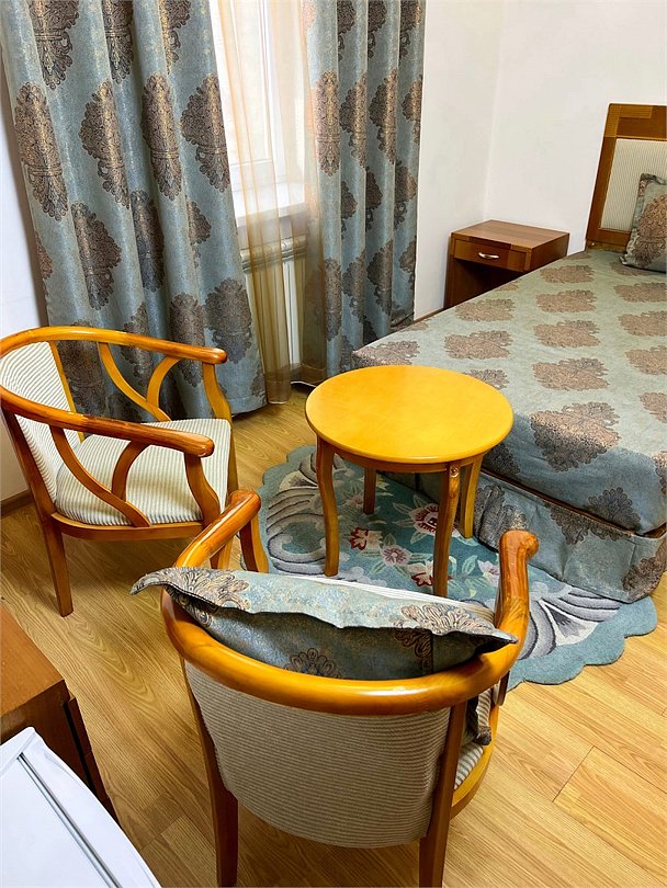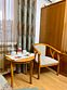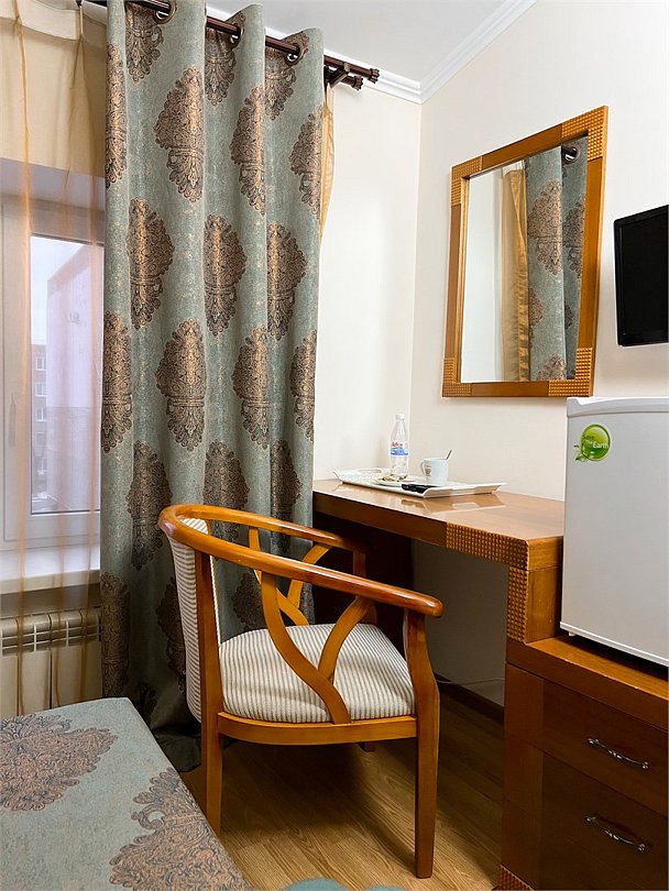 Двухместный, небольшой по площади номер с удобной двуспальной кроватью, двумя креслами и столиком, ЖК-телевизором и компактным туалетом, который совмещен с умывальником и душем. Идеальный вариант для командировочных поездок, а также останавливающимся в отеле на короткое время.