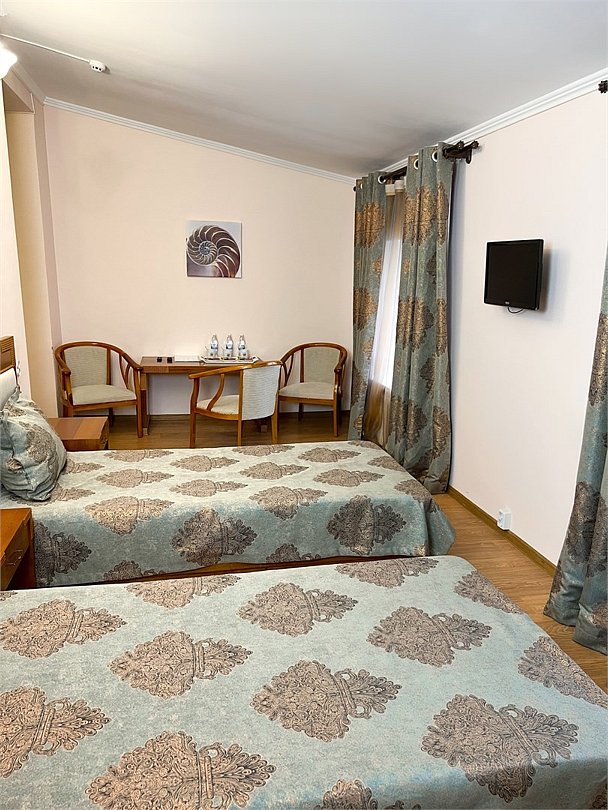Двухместный, небольшой по площади номер с Двумя удобными односпальными кроватями, двумя креслами и столиком,ЖК-телевизором и компактным туалетом, который совмещен с умывальником и душем. Идеальный вариант для командировочных поездок, а также останавливающимся в отеле на короткое время.